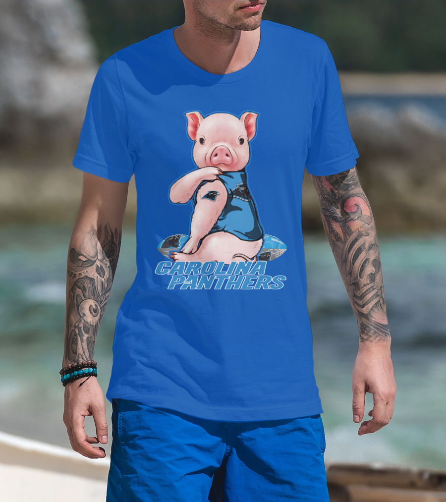 Pig Wearing Carolina Panthers Jersey With Football T-Shirt