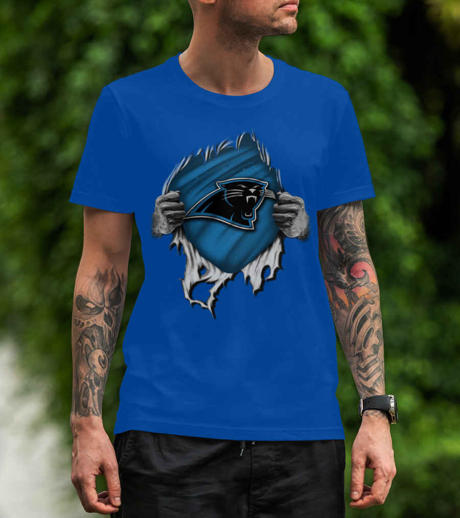Torn Carolina Panthers Blue Black Logo Hands Ripping T-Shirt
