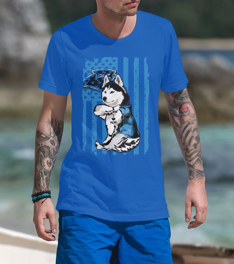 Siberian Husky Carolina Panthers I Love Mom Star T-Shirt