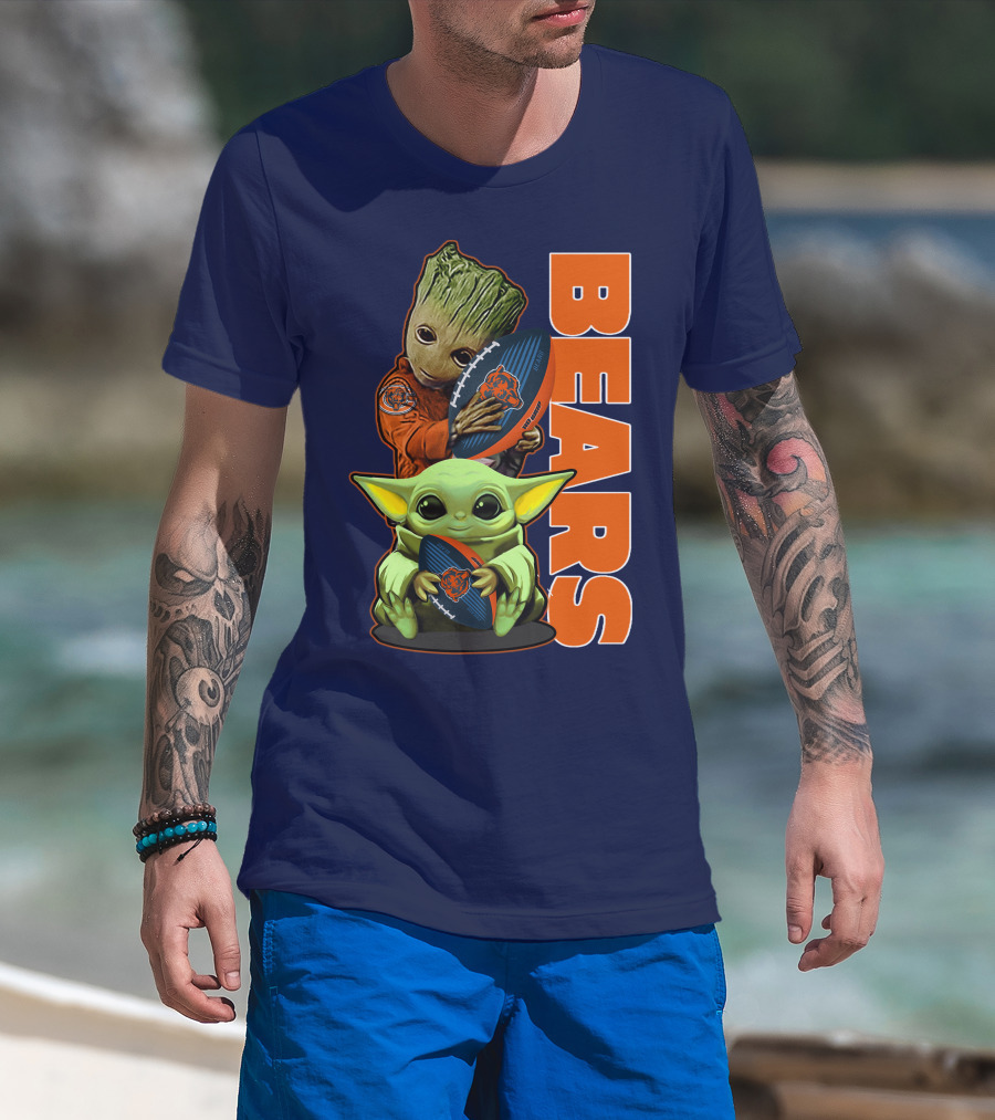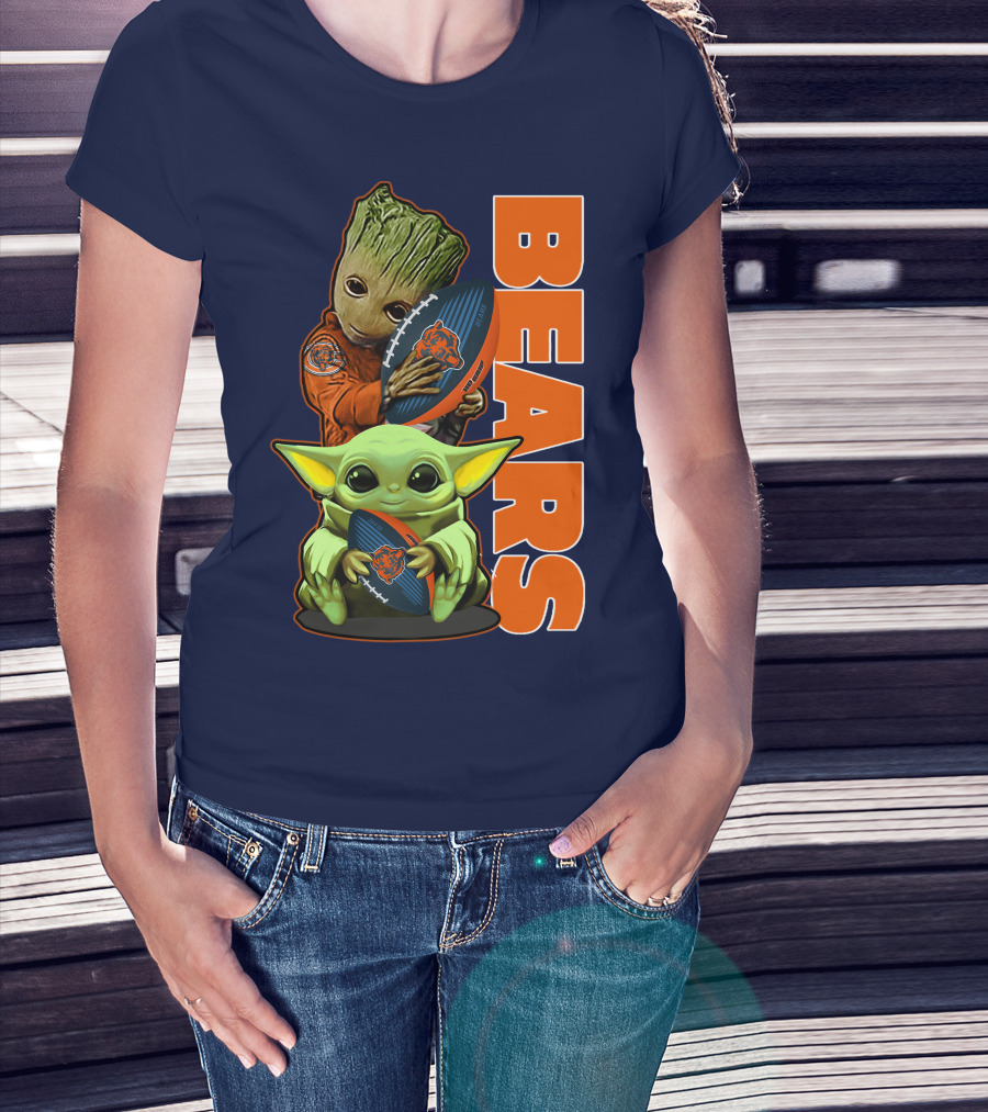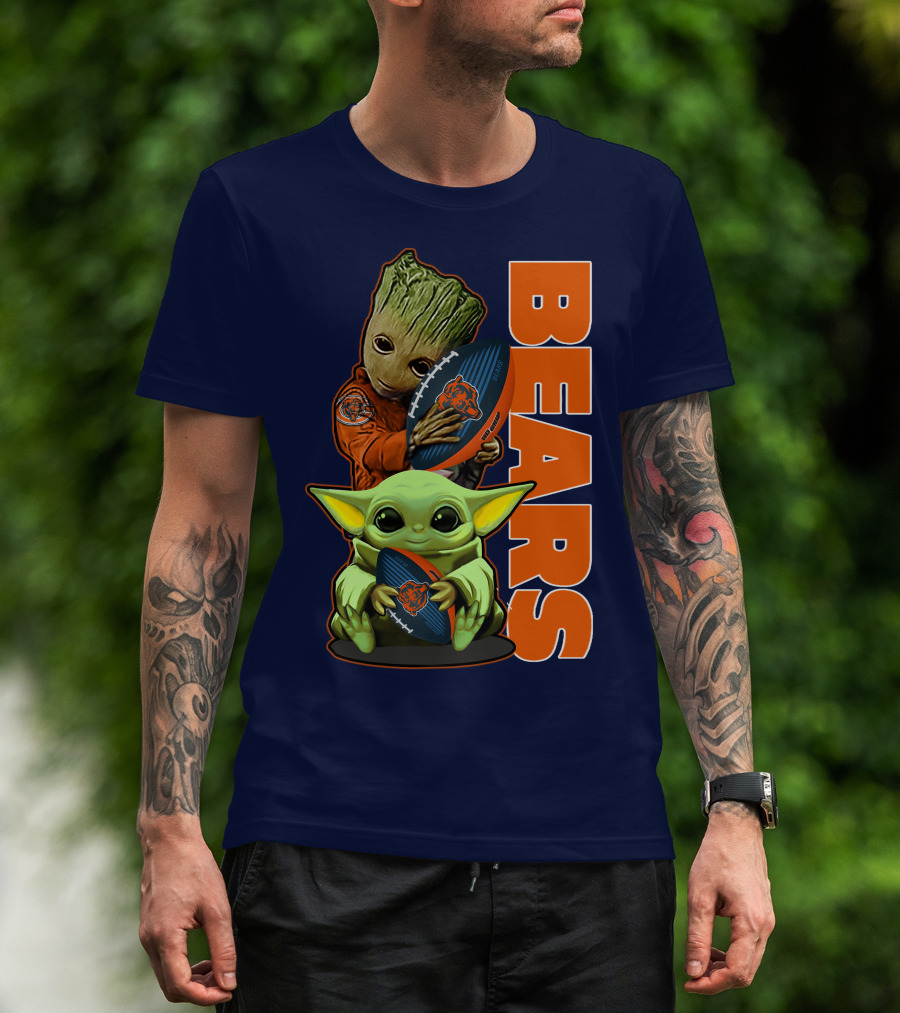 Grzd CHICAGO BEARS Baby Groot And Baby Yoda Football T-Shirt