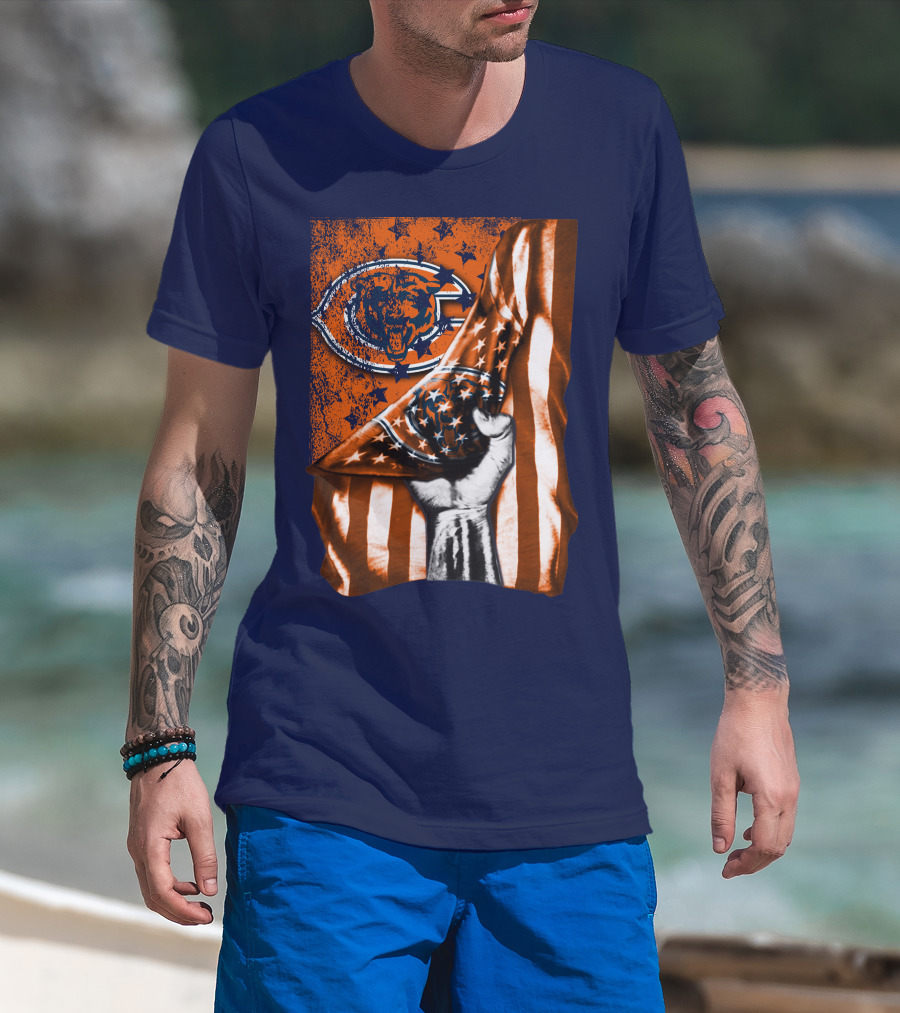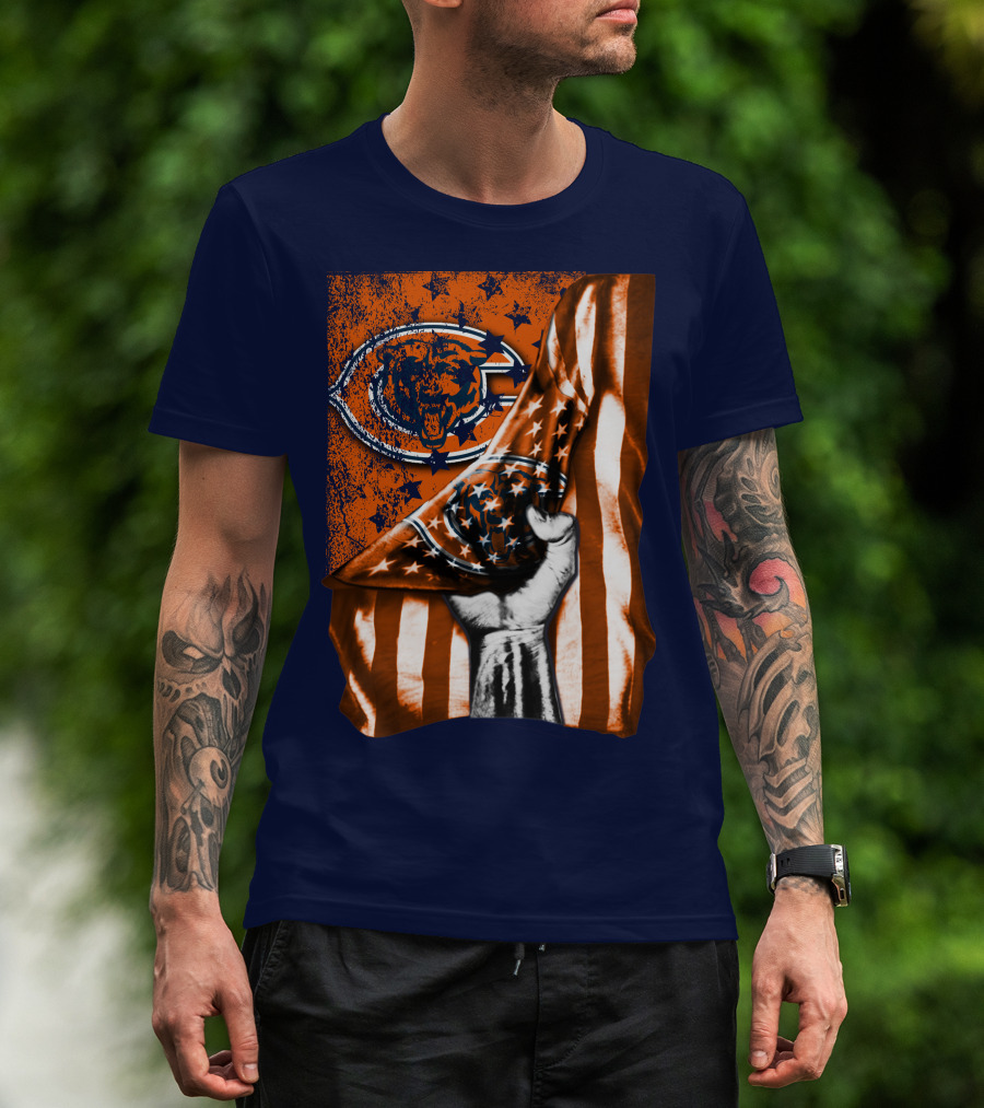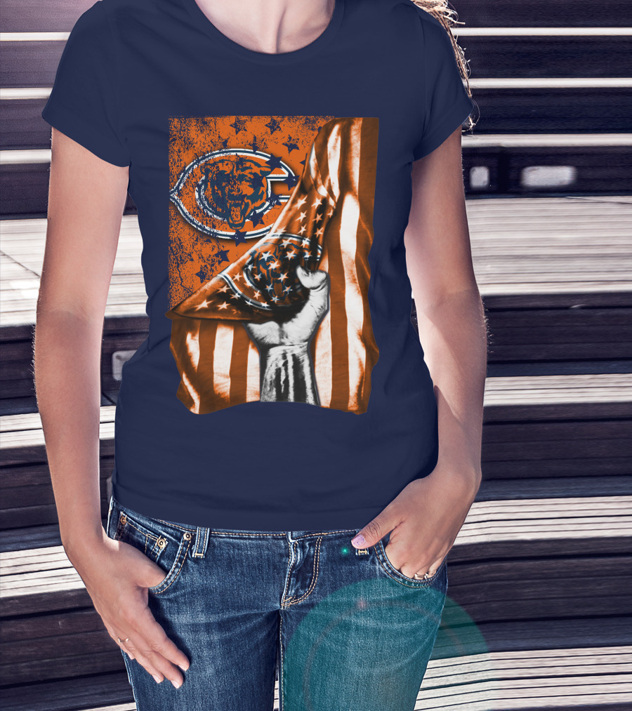 Hand Lifting American Flag Over CHICAGO BEARS T-Shirt