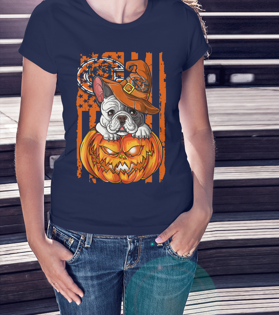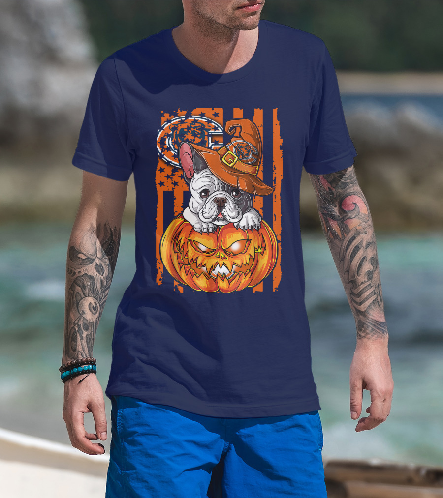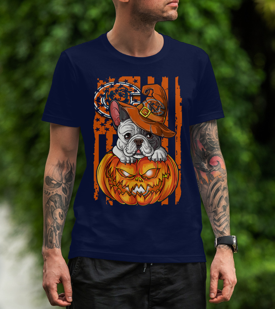 Hlw Bulldog Chicago Bears Halloween Pumpkin Dog T-Shirt