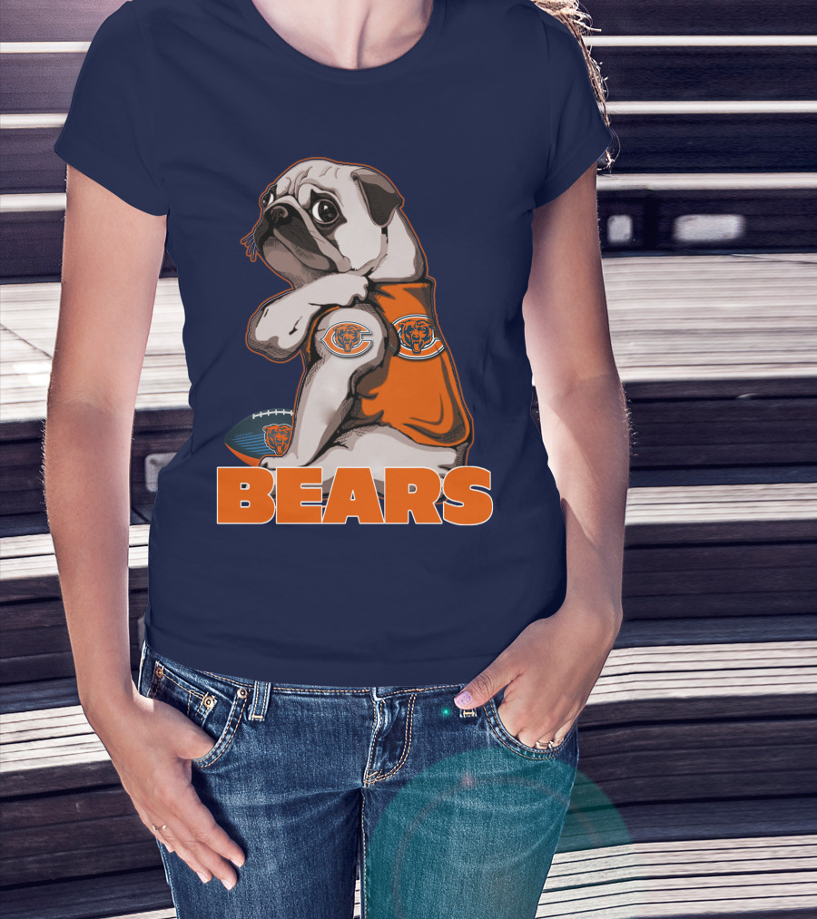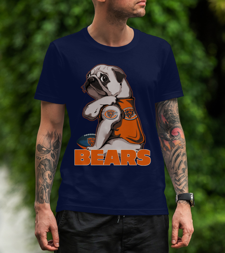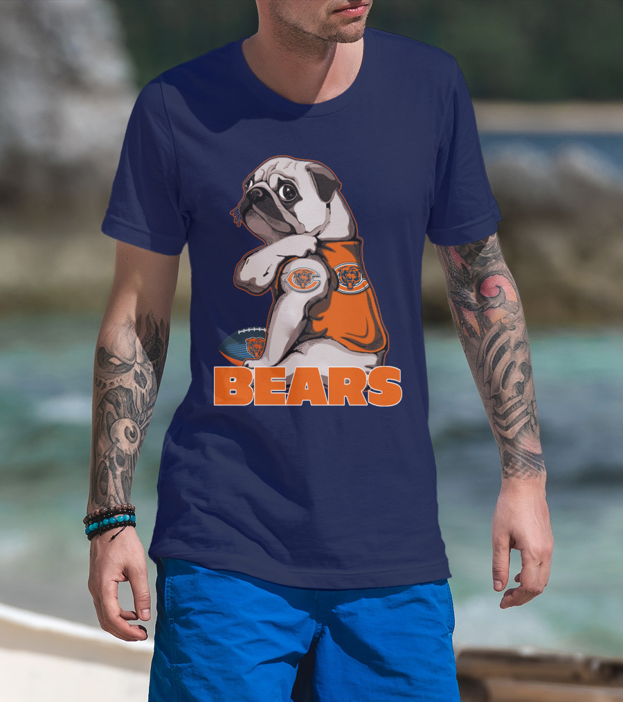 Pug Chicago Bears Football Fan With Team T-Shirt