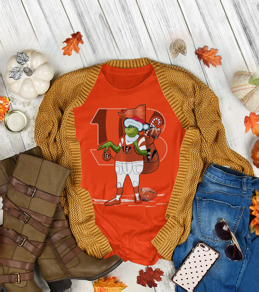 Cincinnati Bengals Grinch Christmas Football Santa Hat Orange T-Shirt