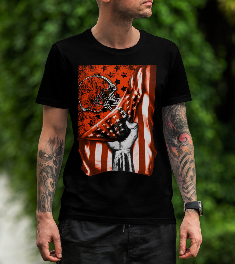 Cleveland Browns Football Helmet American Flag Fist T-Shirt