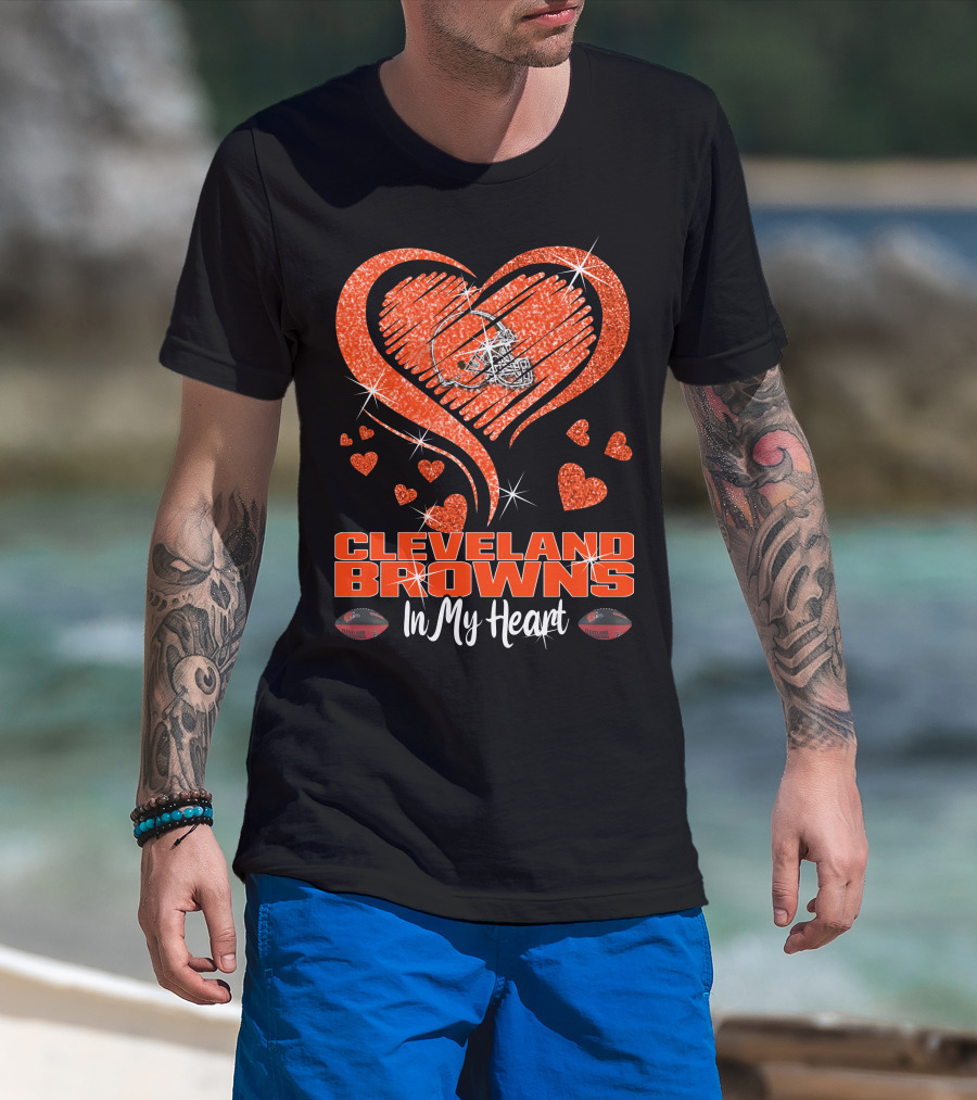 CLEVELAND BROWNS In My Heart Sparkling Helmet And Hearts T-Shirt