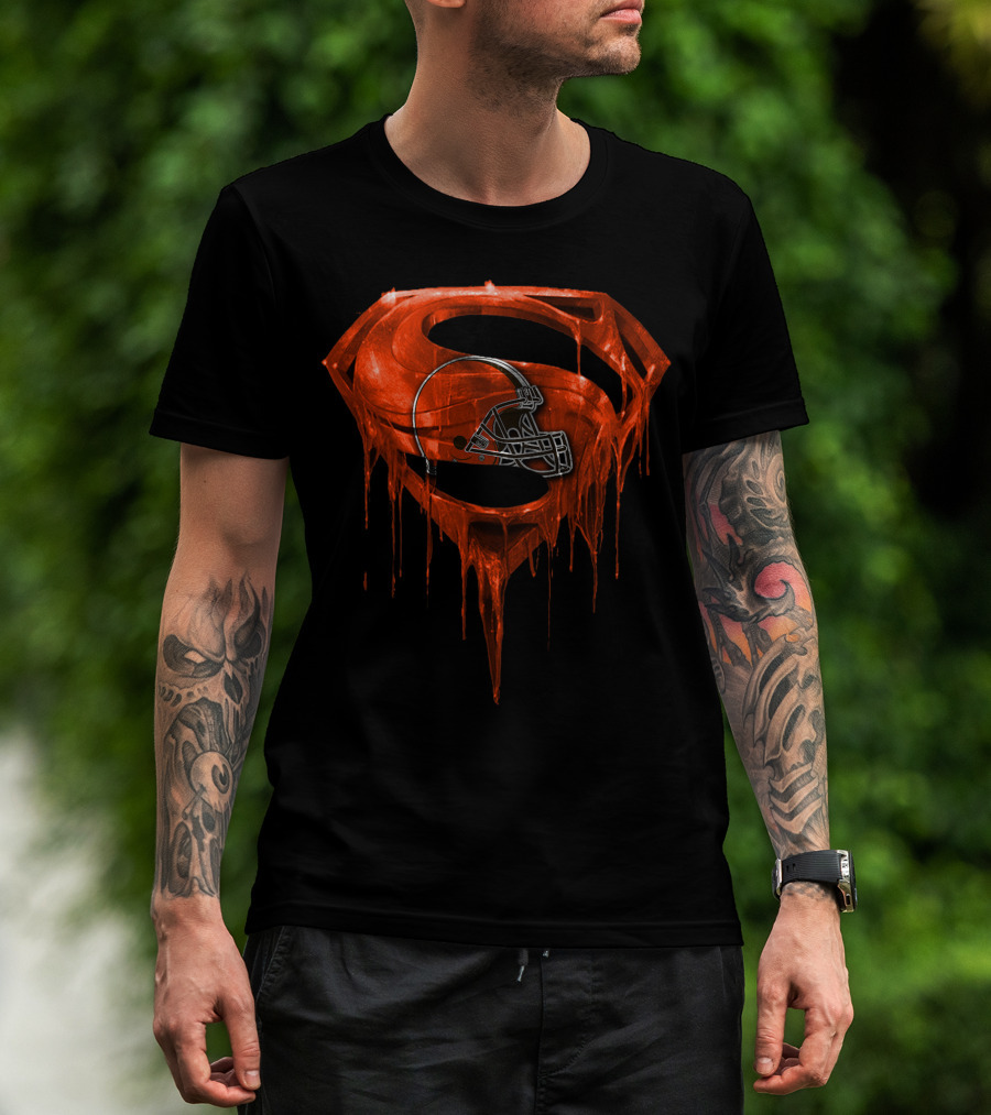 Spm CLEVELAND BROWNS Dripping Superhero Helmet T-Shirt