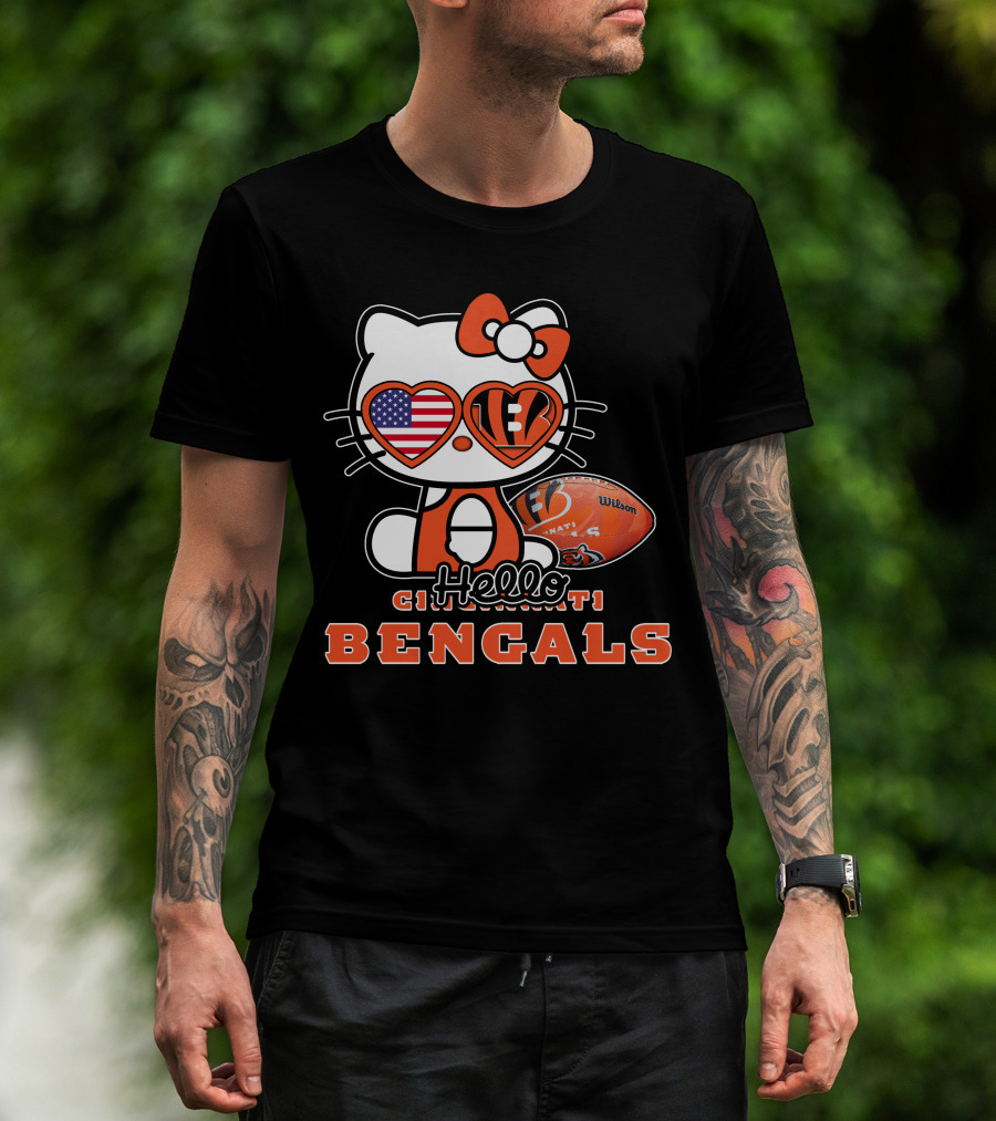 Hello Kitty Cincinnati Bengals American Football Heart Eyes T-Shirt
