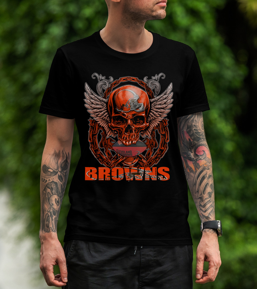 Cleveland Browns Winged Skull Football Chain T-Shirt