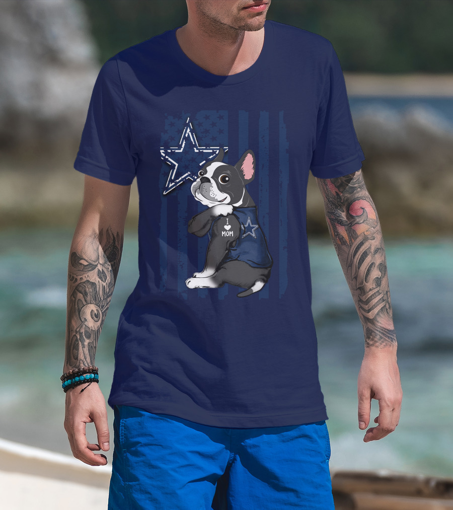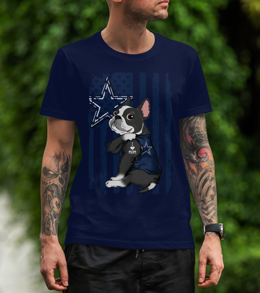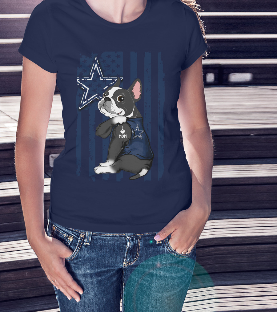 Boston Terrier I Love Mom Dallas Cowboys Star T-Shirt