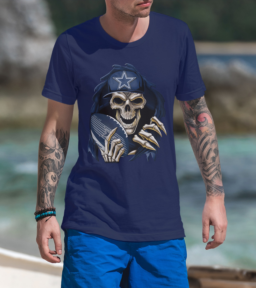 Skullbong Dallas Cowboys Skeleton Holding Football With Star T-Shirt