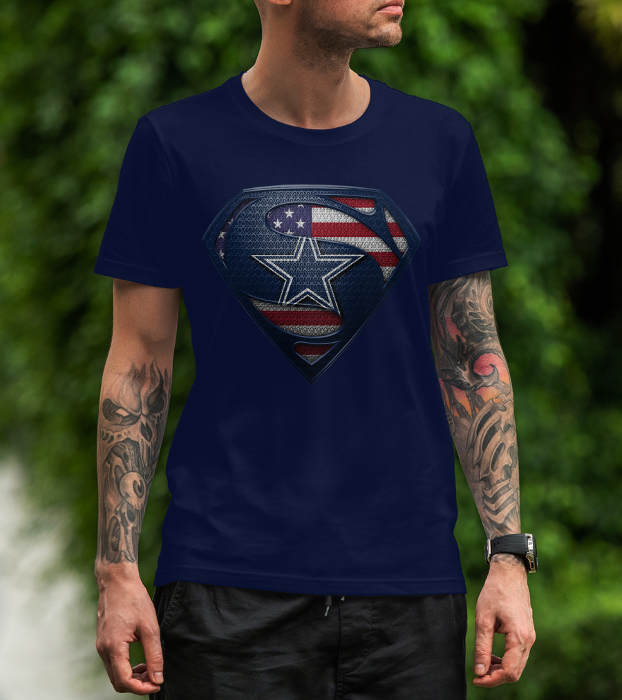 Spm DALLAS COWBOYS Superman Shield American Flag Star T-Shirt