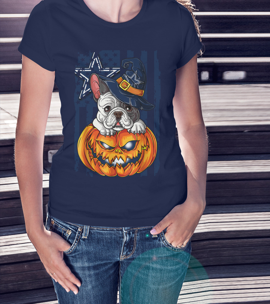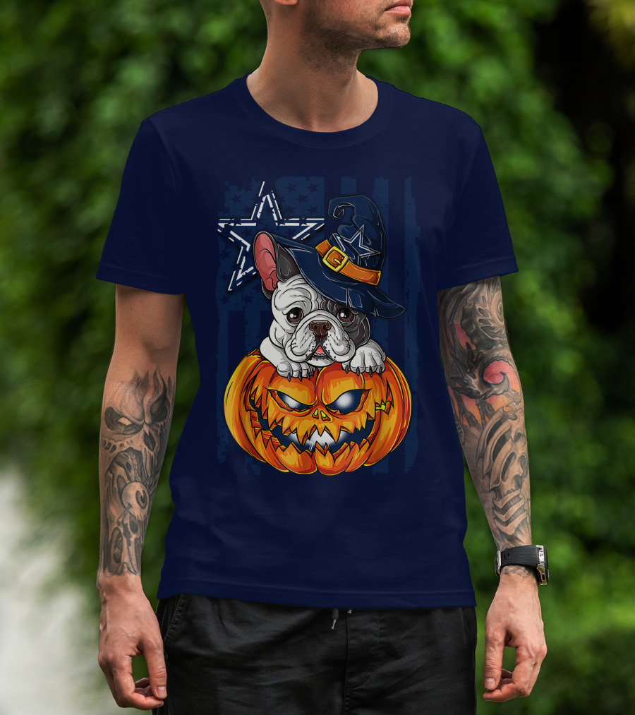 Hlw Bulldog Halloween Dallas Cowboys Pumpkin Wizard Hat T-Shirt