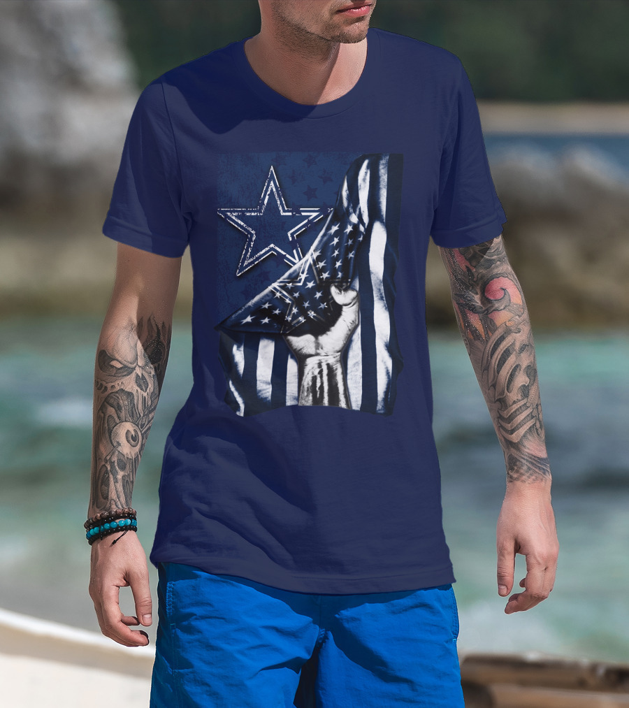 Dallas Cowboys Star With American Flag And Fist T-Shirt