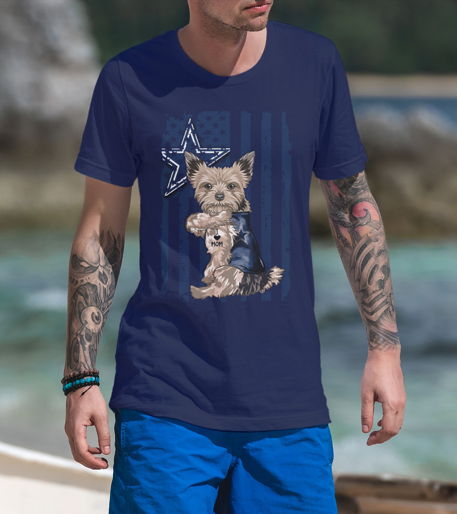 Yorkshire Terrier I Love Mom Dallas Cowboys Fan Flag T-Shirt