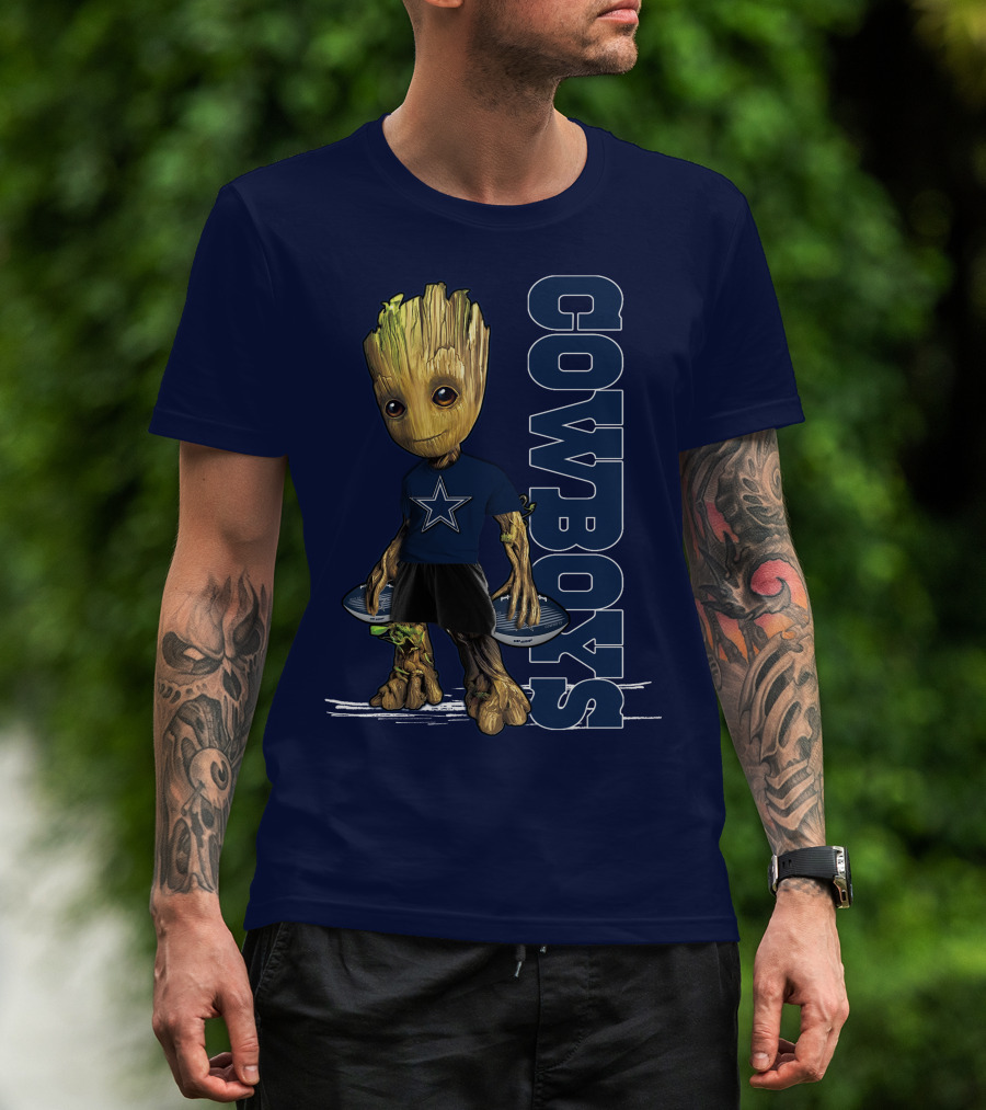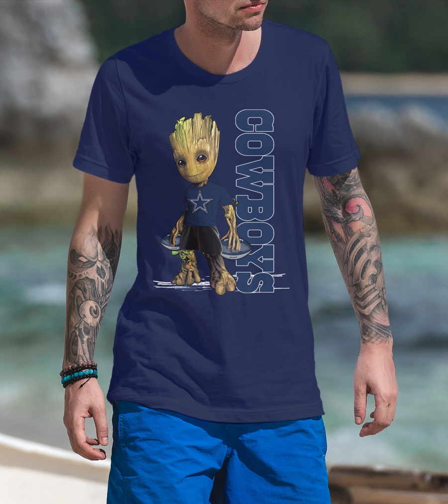 The Groot Dallas Cowboys Star Fan T-shirt is designed for everyday wear and a consistent fit. Fabric is pre-shrunk ring-spun cotton with durable stitching. See the size chart below for exact measurements.
