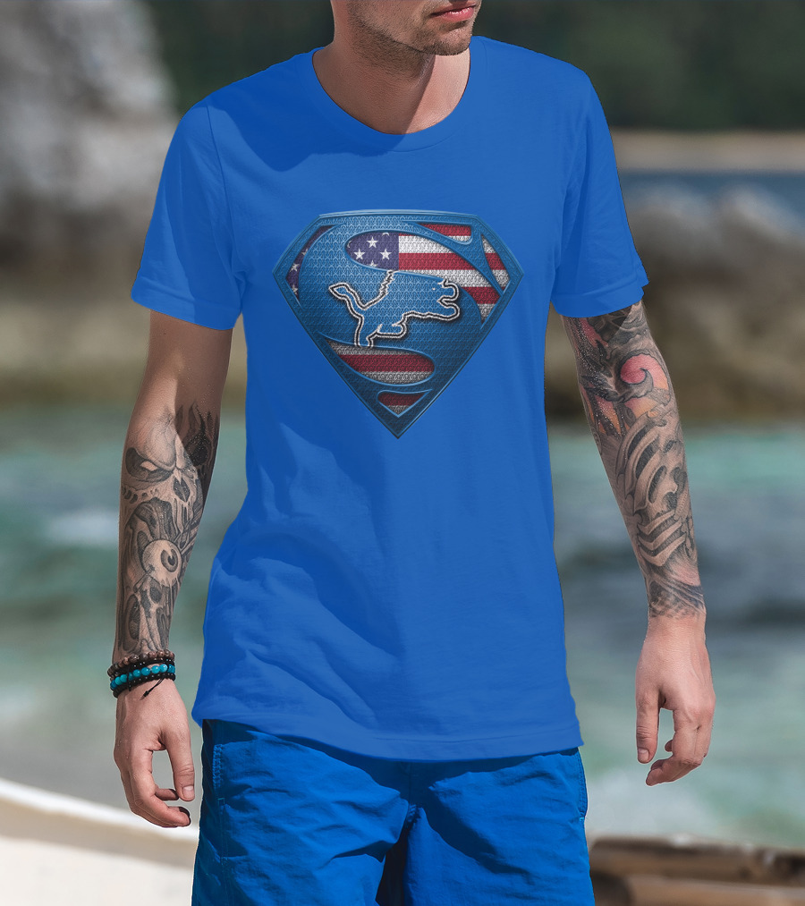 Spm Detroit Lions Superman Shield American Flag T-Shirt