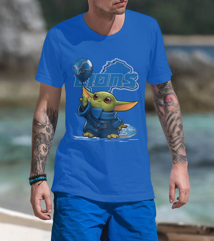 Yoda Detroit Lions Wilson Balloon Football Iconic Crossover T-Shirt
