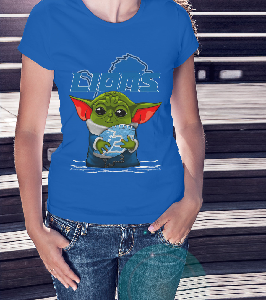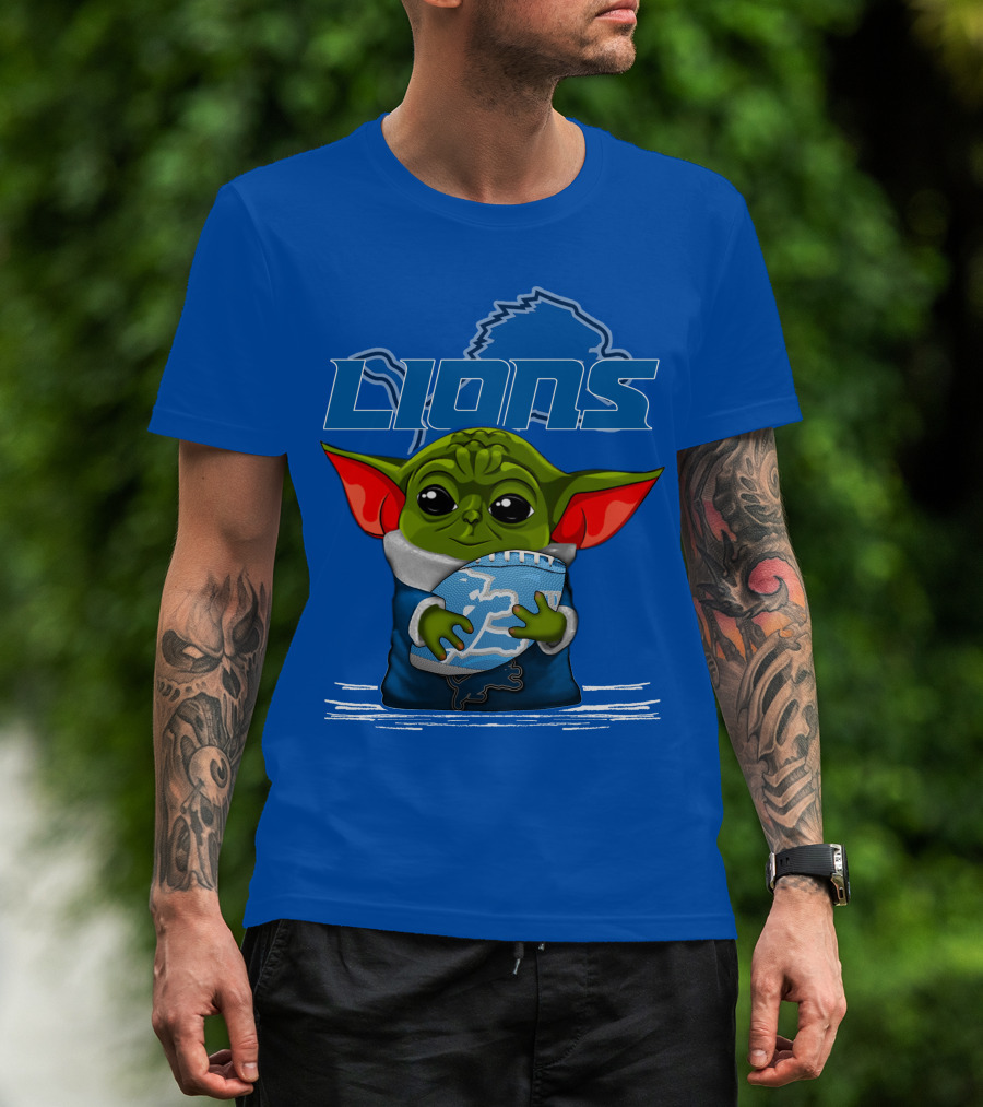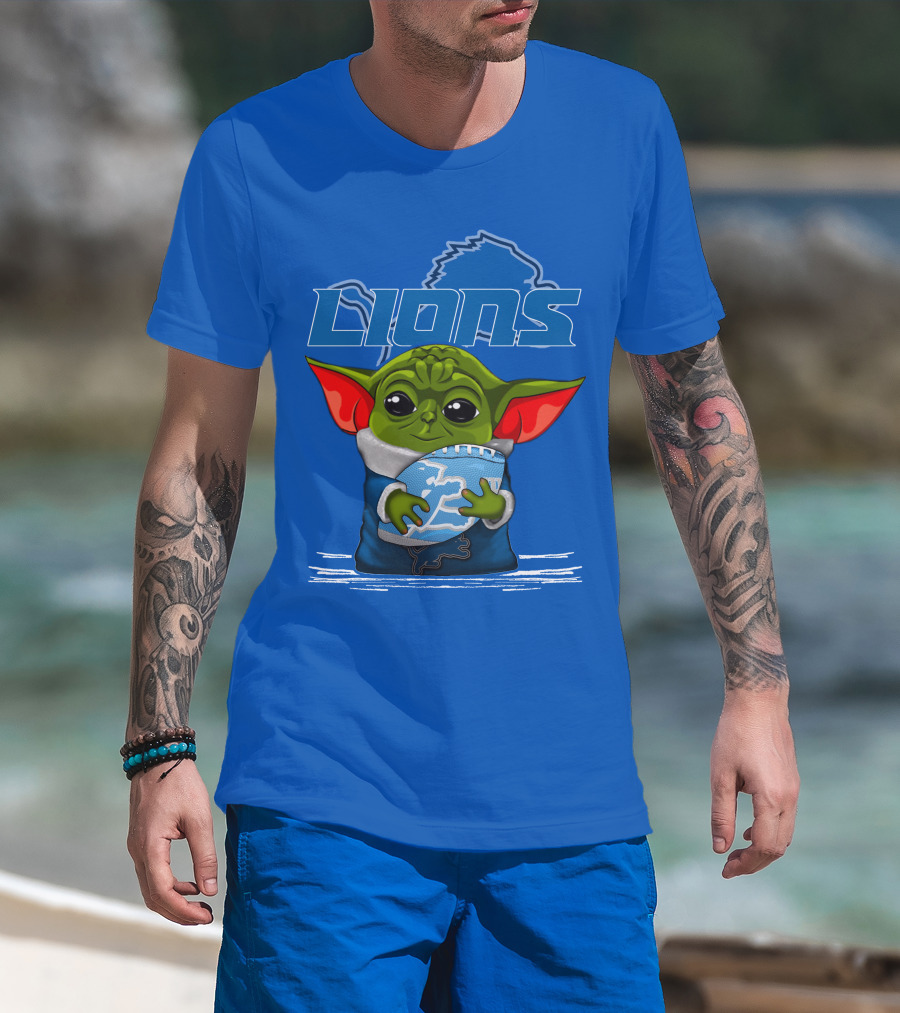 The Yoda Holding Football DETROIT LIONS T-shirt is designed for everyday wear and a consistent fit. Fabric is pre-shrunk ring-spun cotton with durable stitching. See the size chart below for exact measurements.