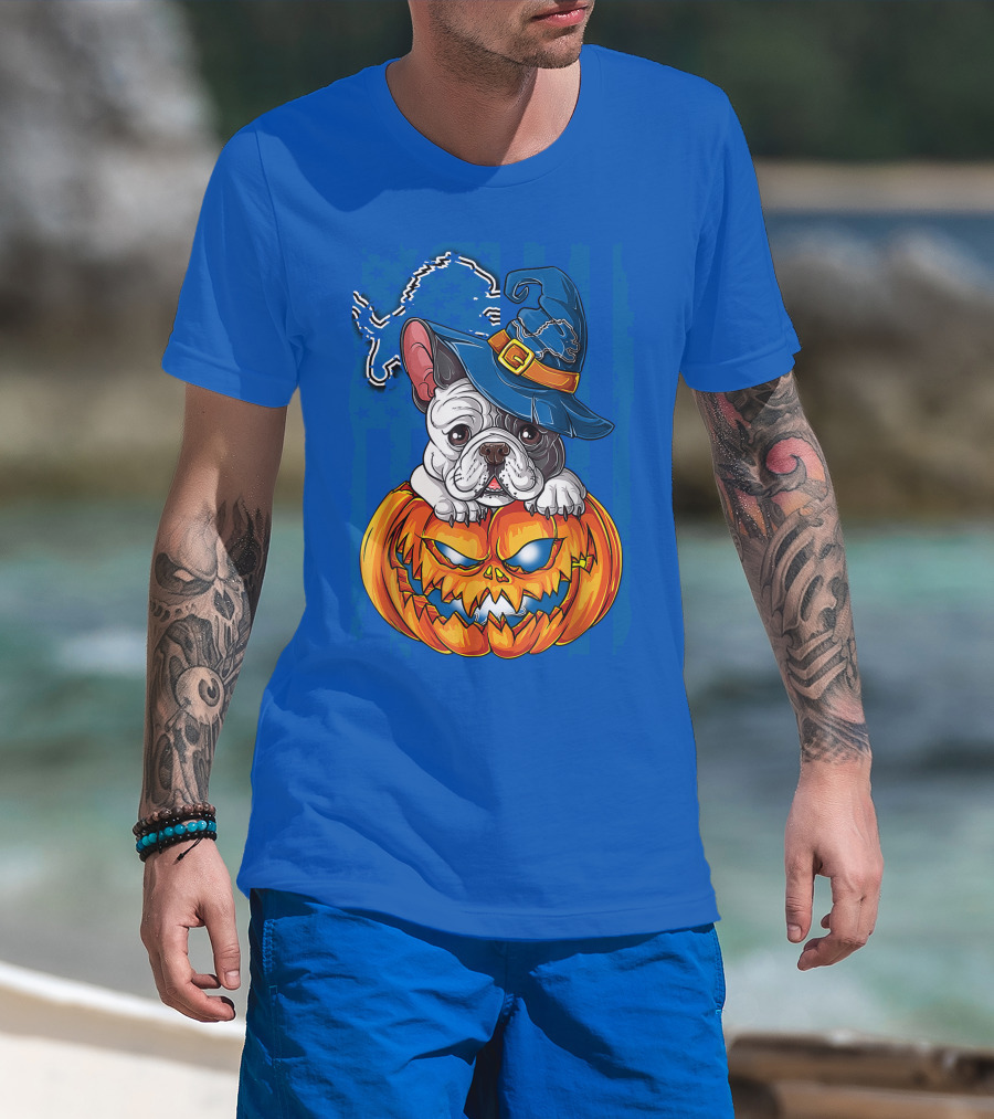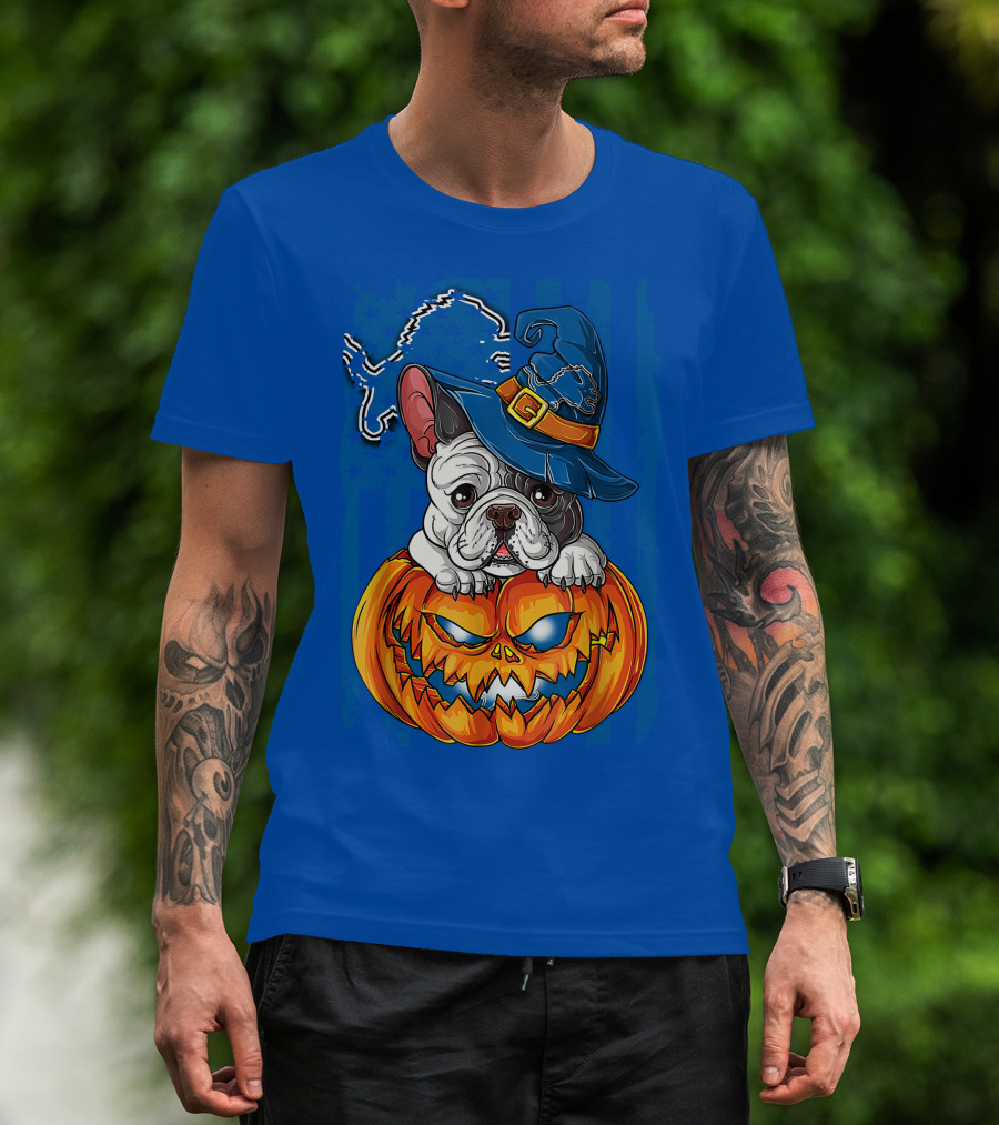 Hlw Bulldog DETROIT LIONS Halloween Bulldog Pumpkin Pajama Football Fan Gift T-Shirt