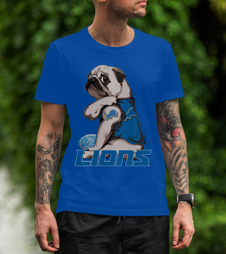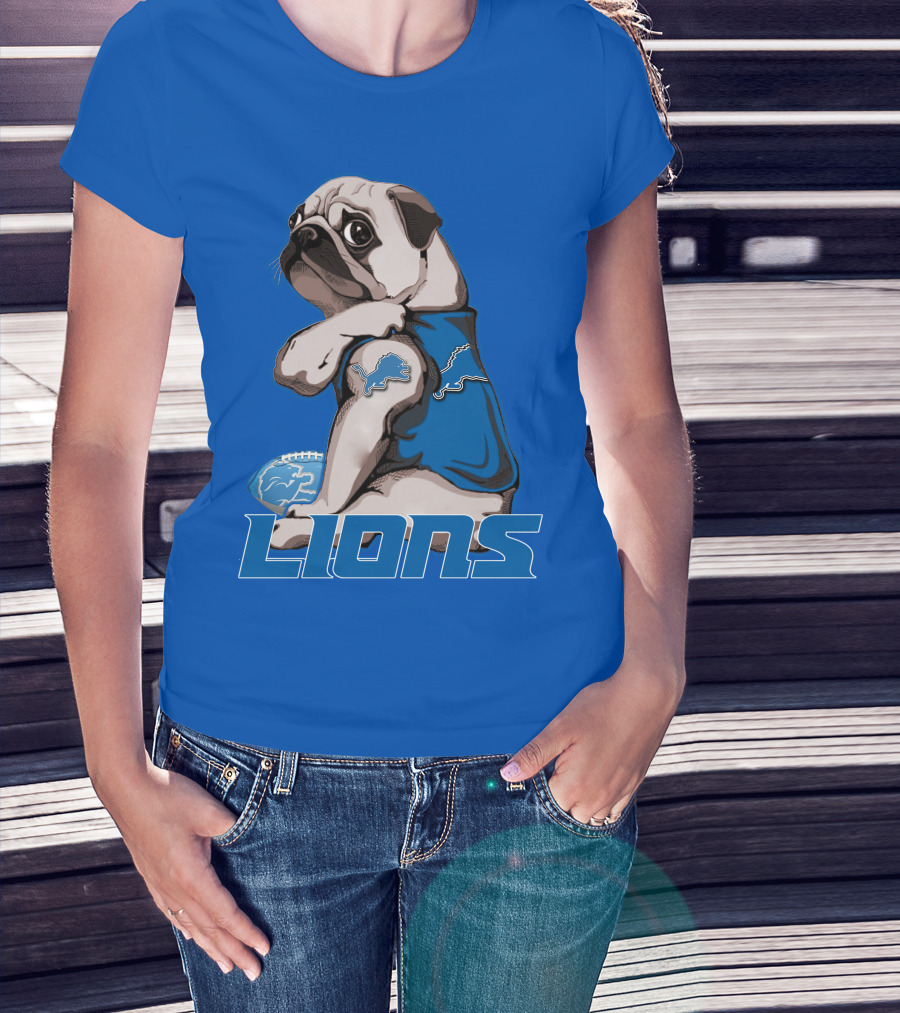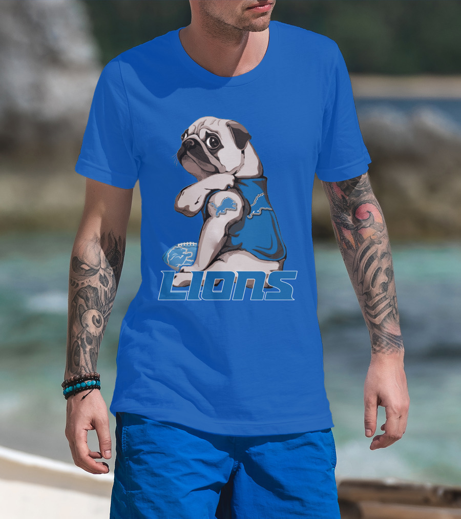 The Pug Lions Football Detroit T-shirt is designed for everyday wear and a consistent fit. Fabric is pre-shrunk ring-spun cotton with durable stitching. See the size chart below for exact measurements.