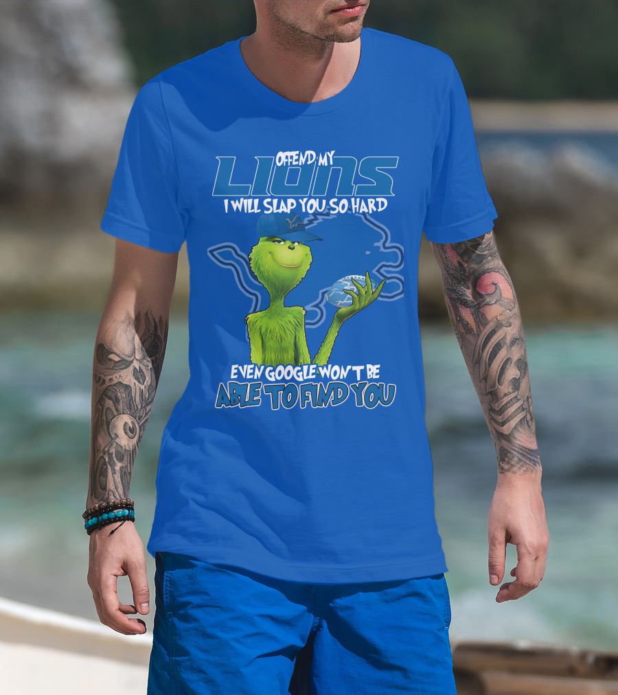 GRINCH DETROIT LIONS OFFEND MY LIONS I WILL SLAP YOU SO HARD EVEN GOOGLE WON'T BE ABLE TO FIND YOU T-Shirt