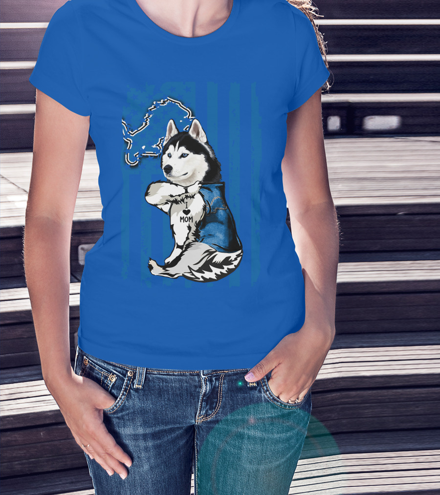 Siberian Husky I Love Mom Detroit Lions T-Shirt