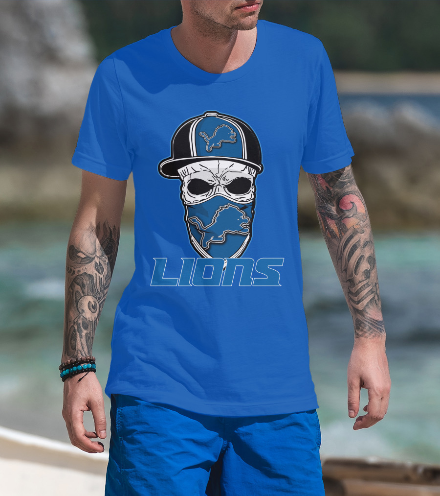 Detroit Lions Skull Hat Face Cover LIONS T-Shirt