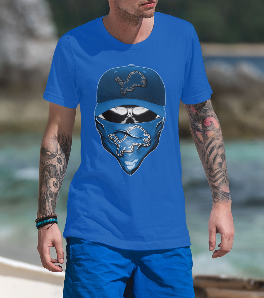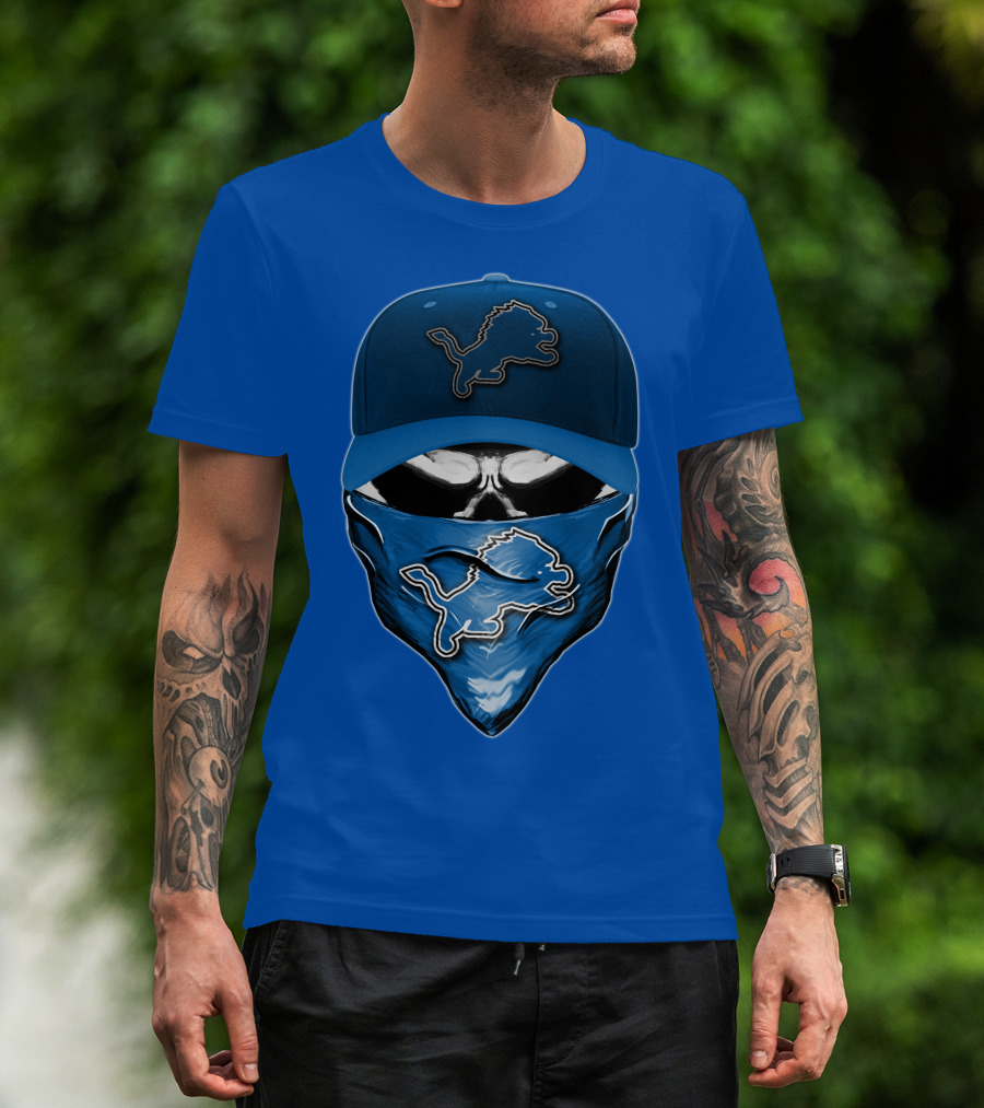 DETROIT LIONS Skull Face Mask Cap T-Shirt
