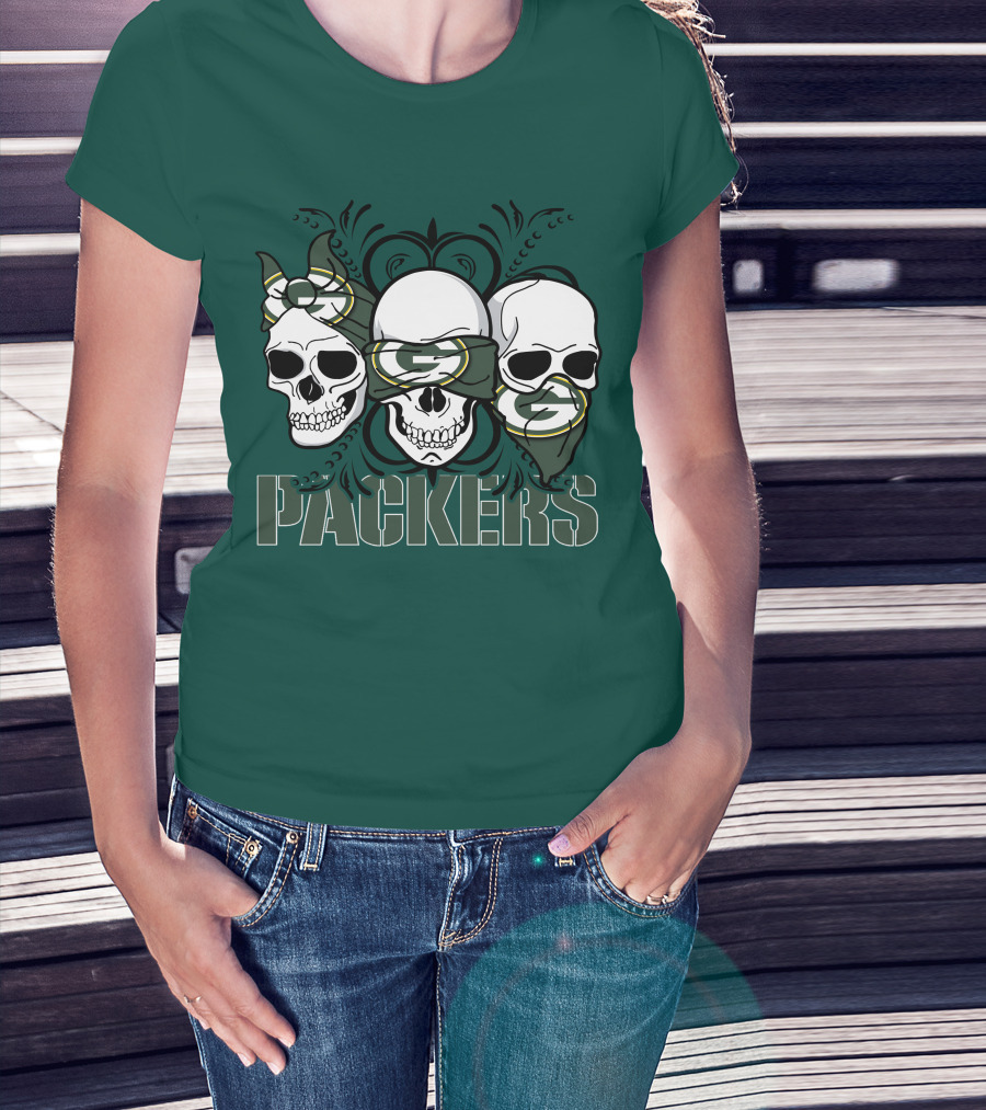 Packers Three Skulls With Green Bay Bandanas T-Shirt