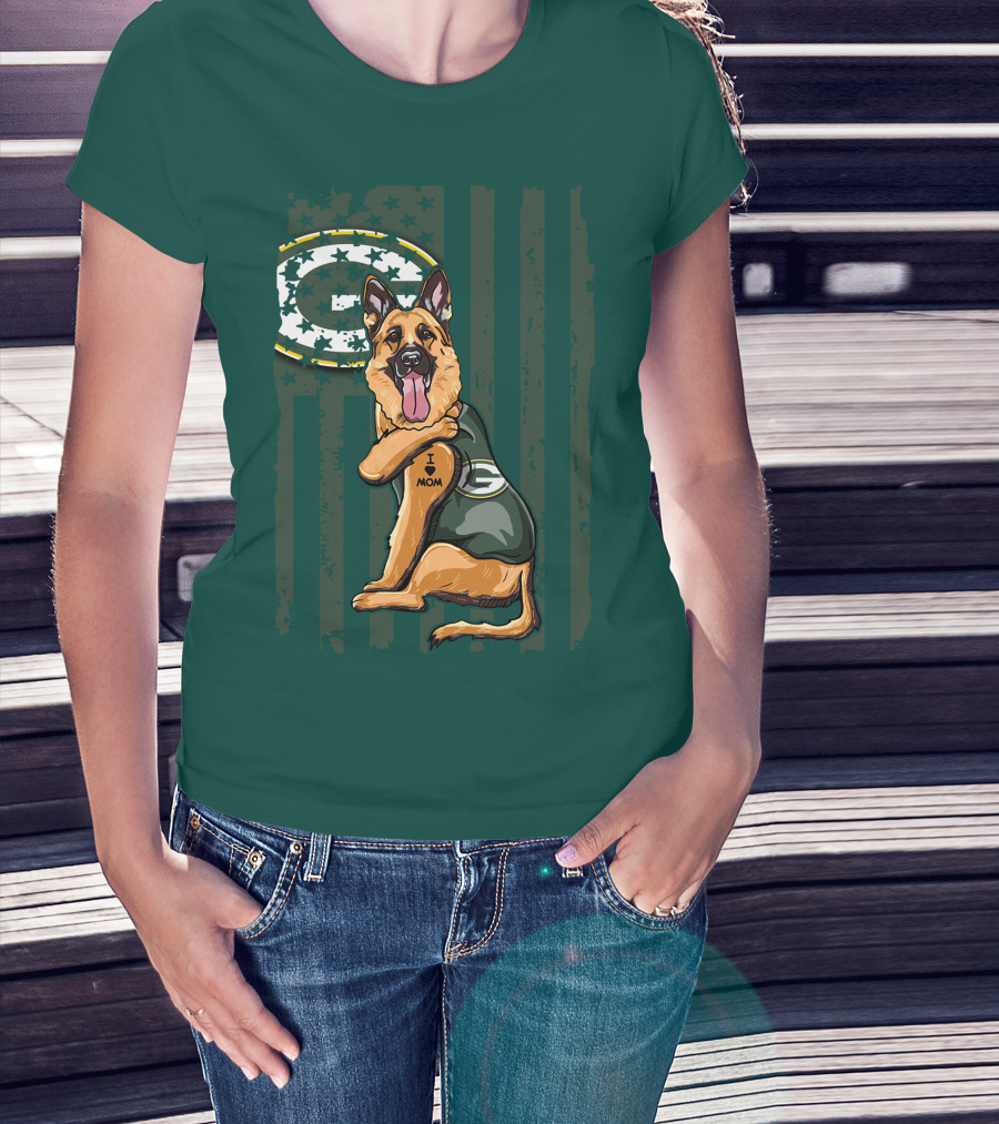 German Shepherd I Love Mom Green Bay Packers Fan T-Shirt