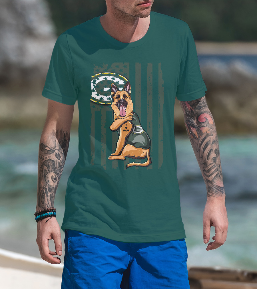 The German Shepherd I Love Mom Green Bay Packers Fan T-shirt is designed for everyday wear and a consistent fit. Fabric is pre-shrunk ring-spun cotton with durable stitching. See the size chart below for exact measurements.