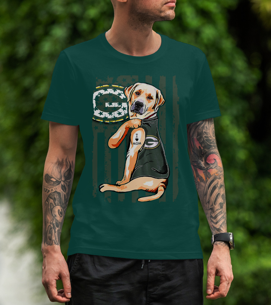 Labrador Retriever I Love Mom Green Bay Packers Fan Stars T-Shirt