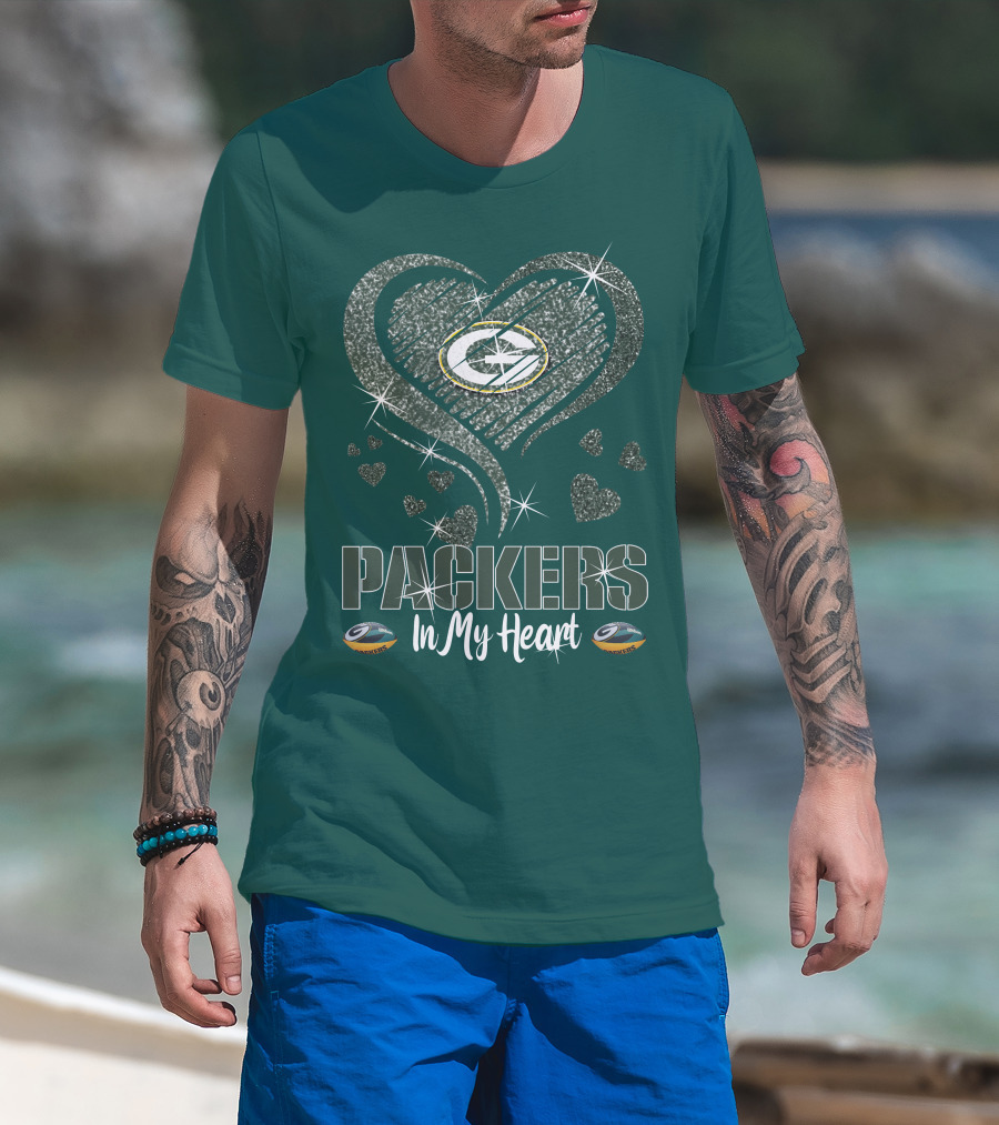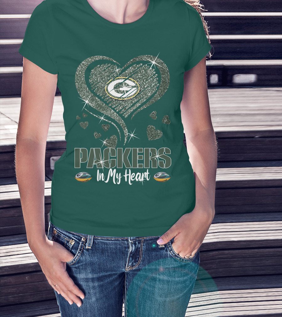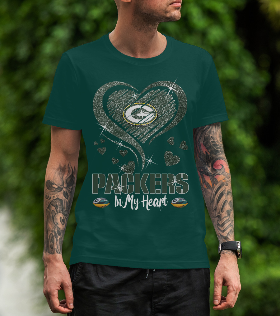 The Packers In My Heart Green Bay Packers T-shirt is designed for everyday wear and a consistent fit. Fabric is pre-shrunk ring-spun cotton with durable stitching. See the size chart below for exact measurements.