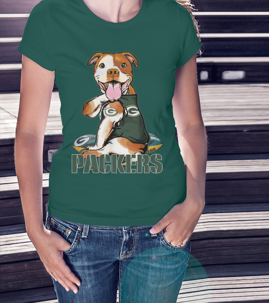 Pitbull Dog In Green Bay Packers Jersey With Football T-Shirt