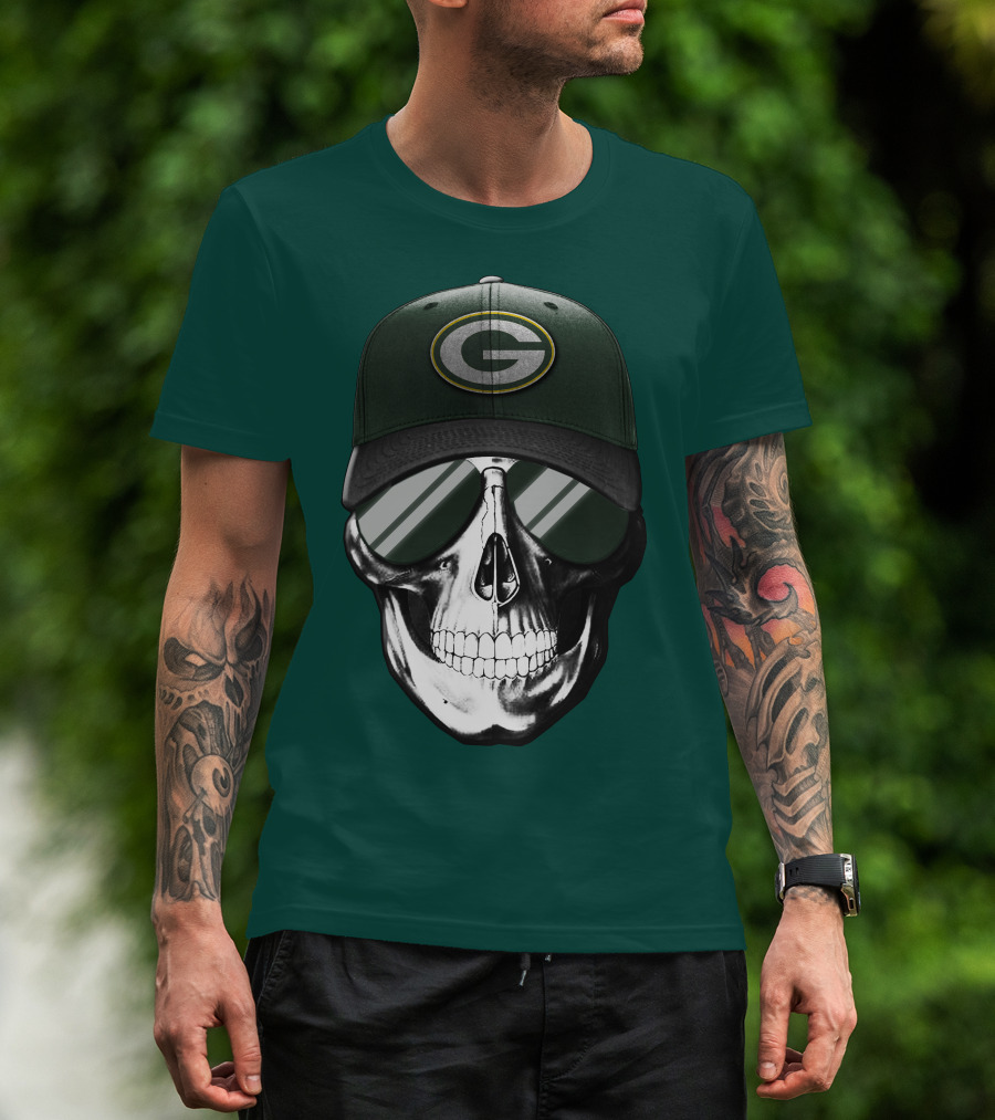 The Green Bay Packers Skull Hat T-shirt is designed for everyday wear and a consistent fit. Fabric is pre-shrunk ring-spun cotton with durable stitching. See the size chart below for exact measurements.