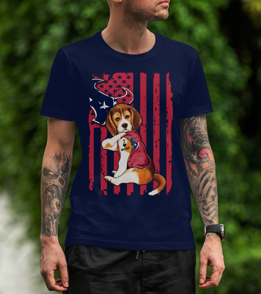 The Houston Texans Beagle I Love Mom T-shirt is designed for everyday wear and a consistent fit. Fabric is pre-shrunk ring-spun cotton with durable stitching. See the size chart below for exact measurements.