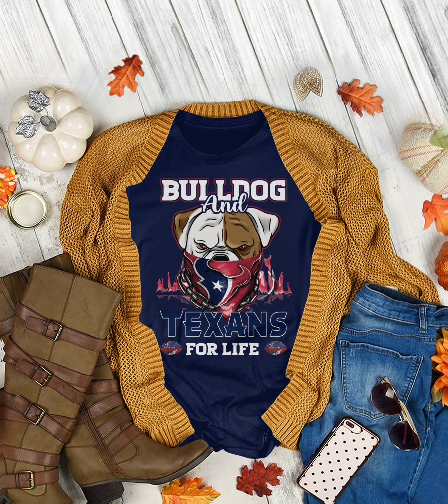 Bulldog And Texans For Life Houston Texans Fan Bulldog With Team Logo Bandana T-Shirt
