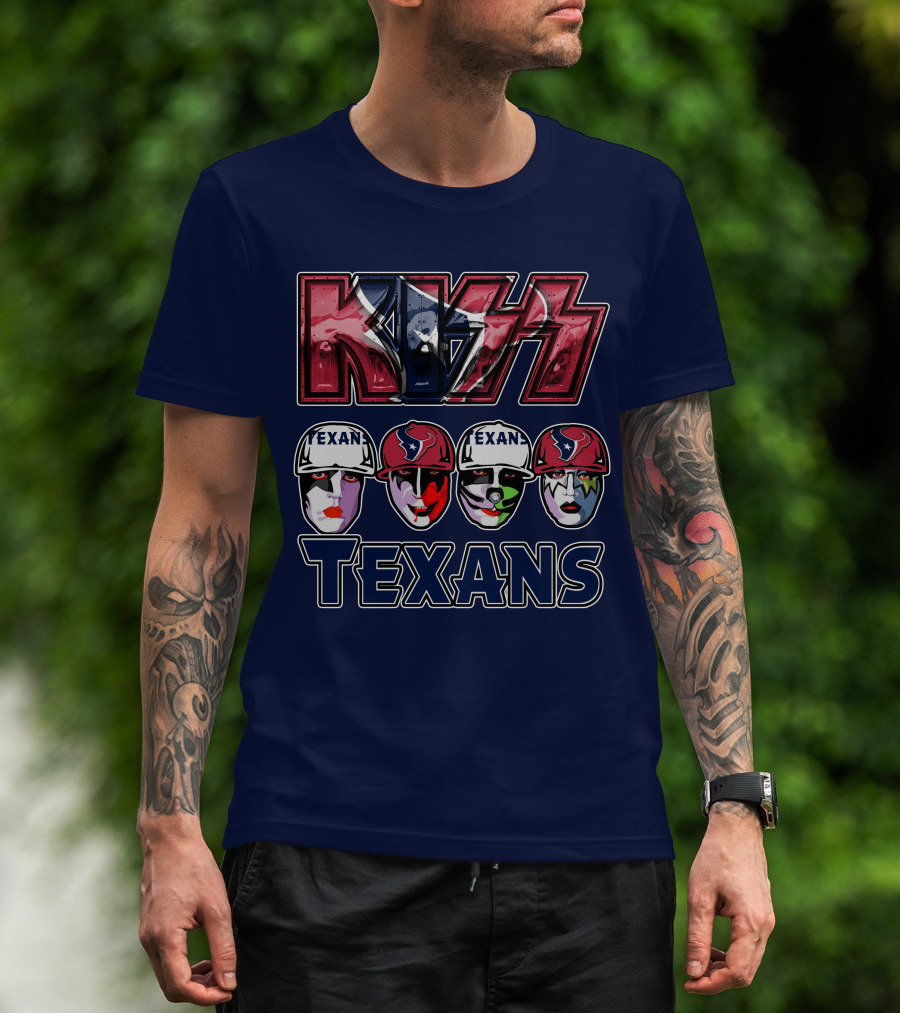 The Kiss Texans Band Face Paint NFL T-shirt is designed for everyday wear and a consistent fit. Fabric is pre-shrunk ring-spun cotton with durable stitching. See the size chart below for exact measurements.