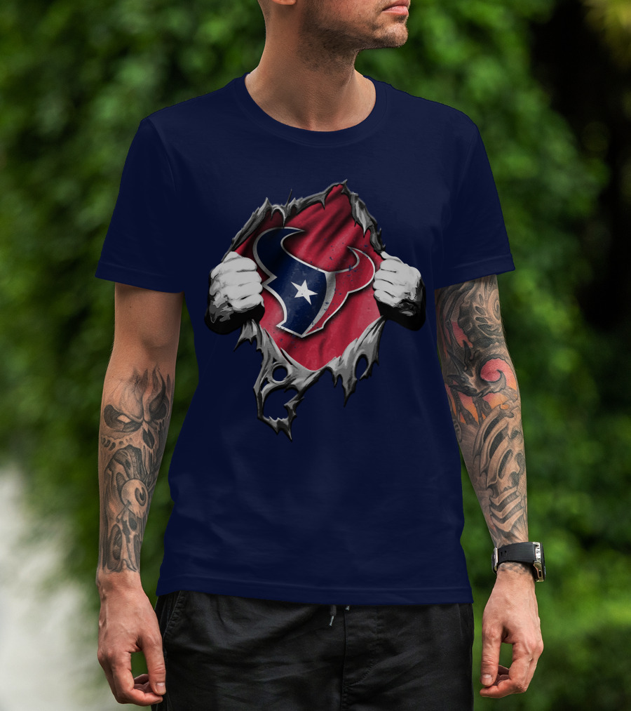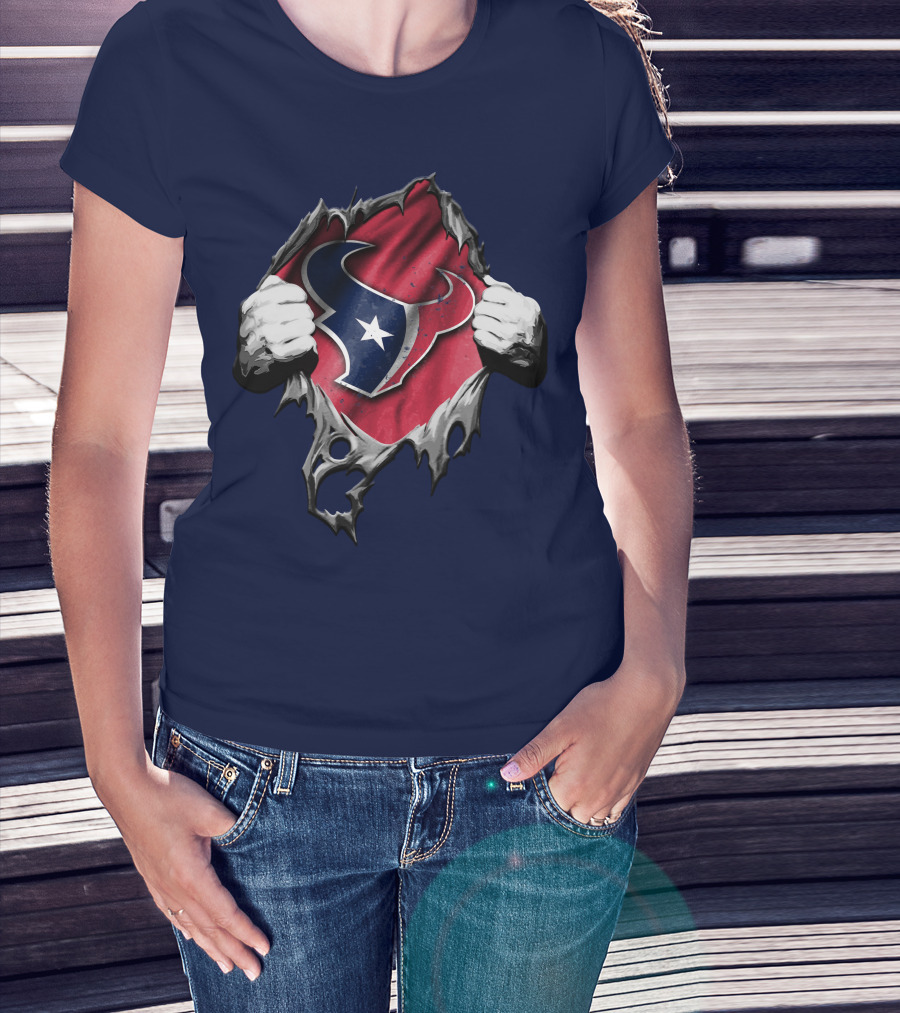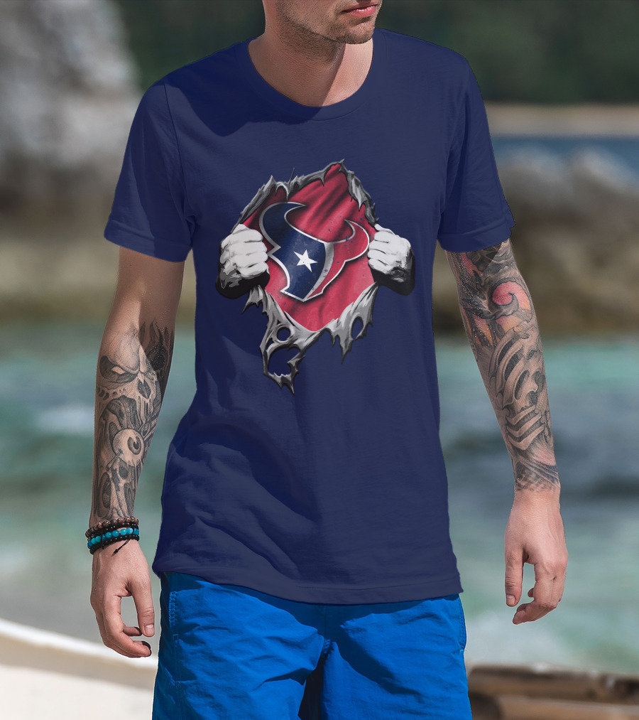 Torn Houston Texans Logo Hidden Beneath Rip Effect T-Shirt