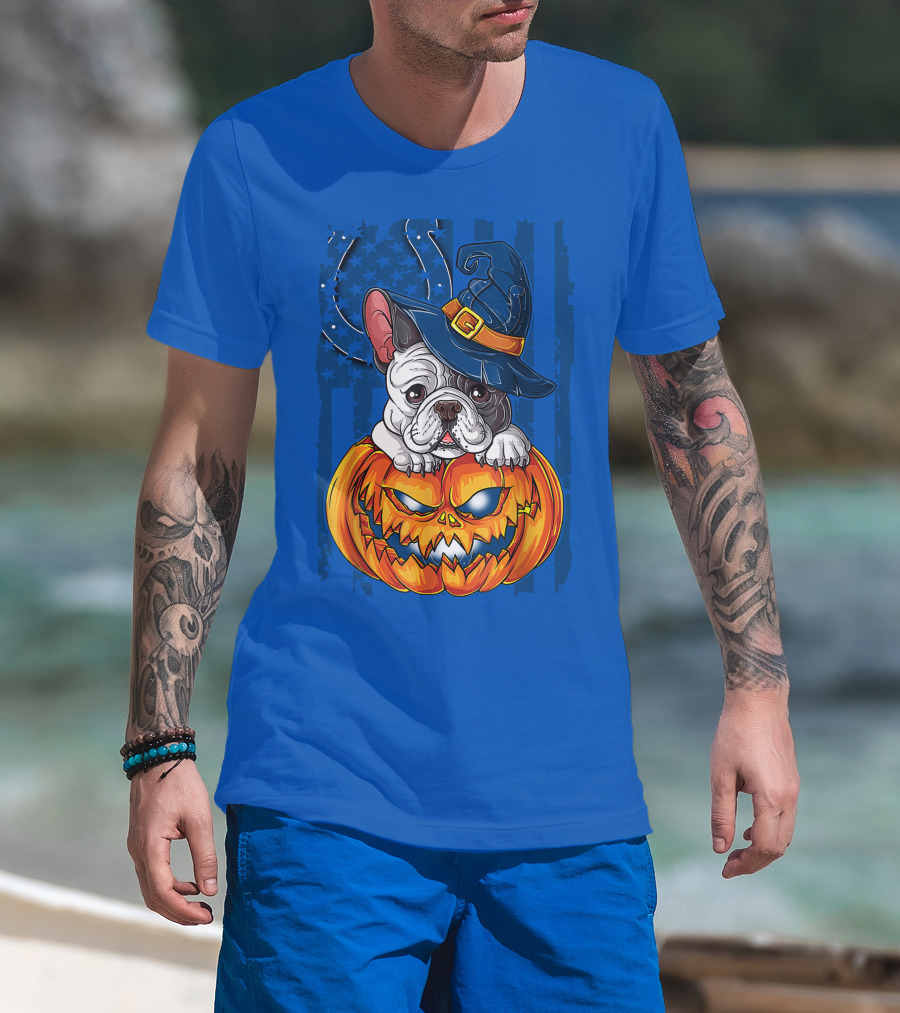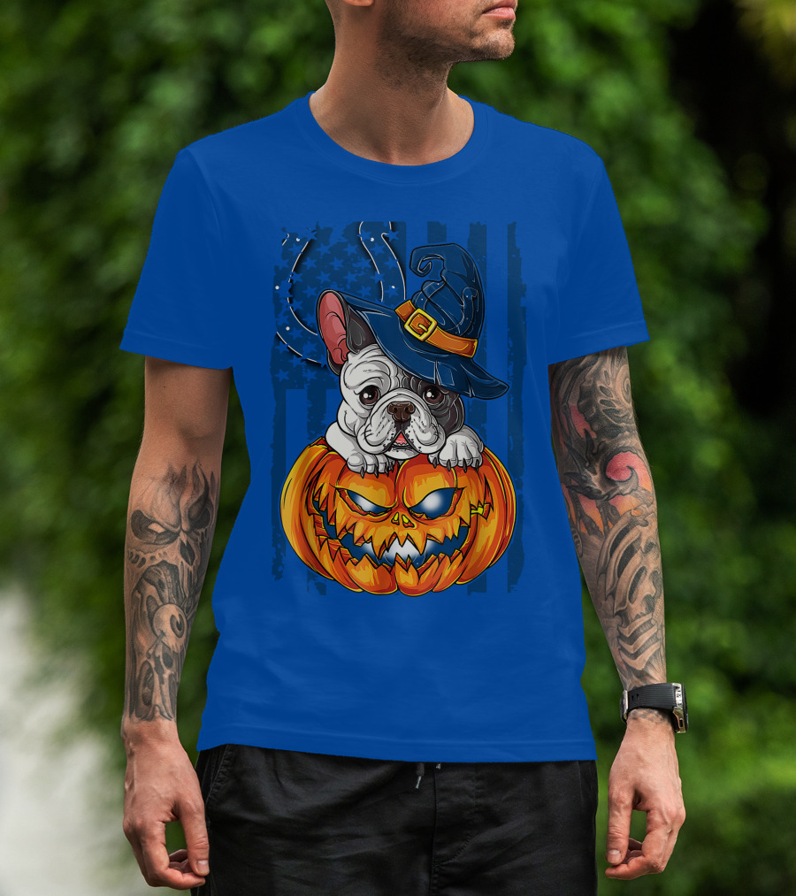 The Hlw Bulldog Witch Hat Pumpkin Indianapolis Colts T-shirt is designed for everyday wear and a consistent fit. Fabric is pre-shrunk ring-spun cotton with durable stitching. See the size chart below for exact measurements.