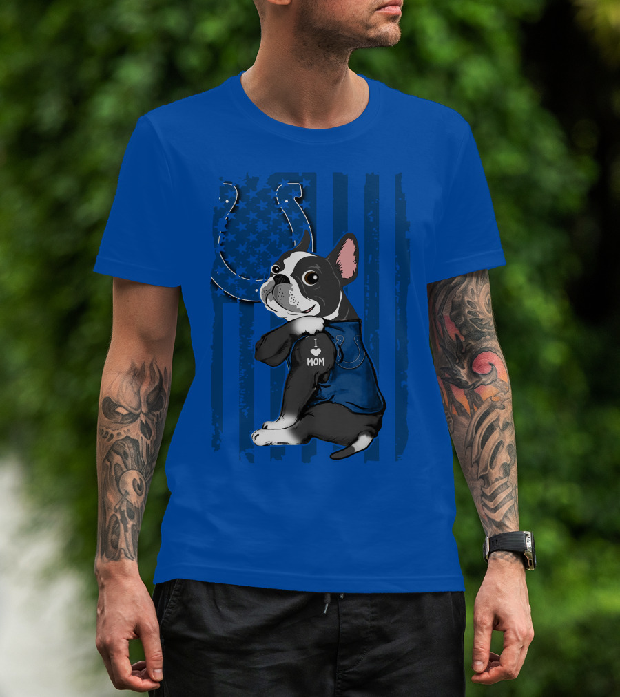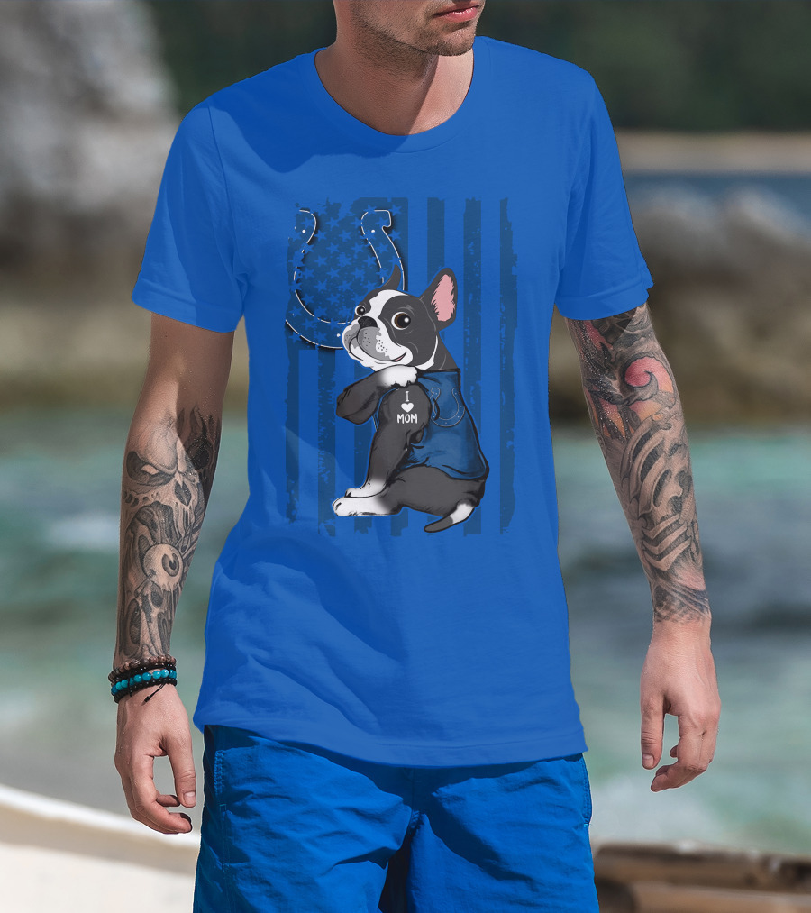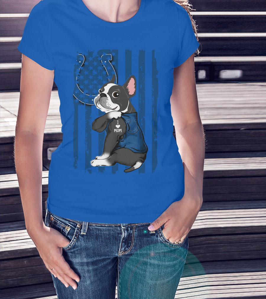 Indianapolis Colts Boston Terrier I Love Mom T-Shirt