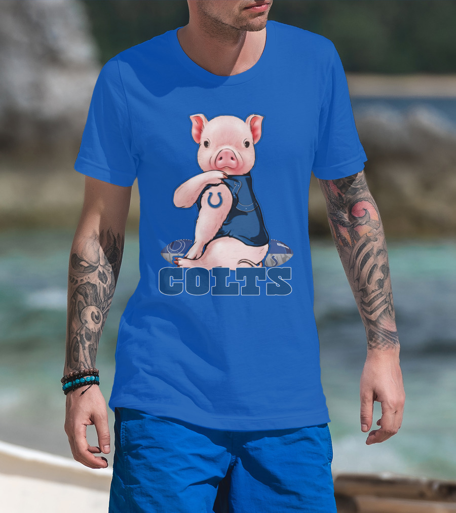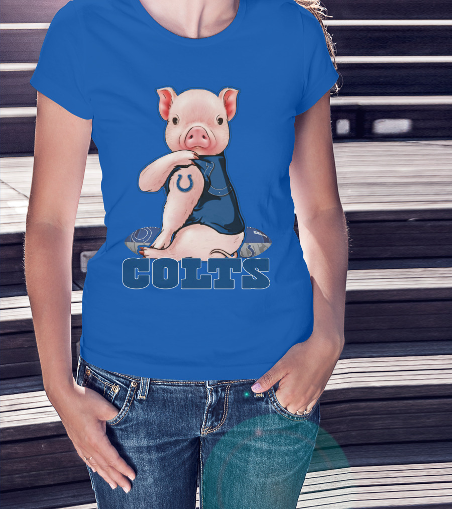 Pig Wearing Indianapolis Colts Jersey With Football T-Shirt