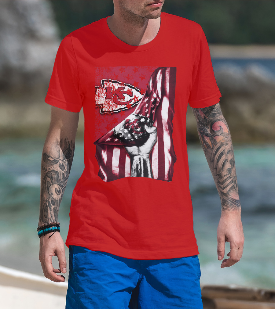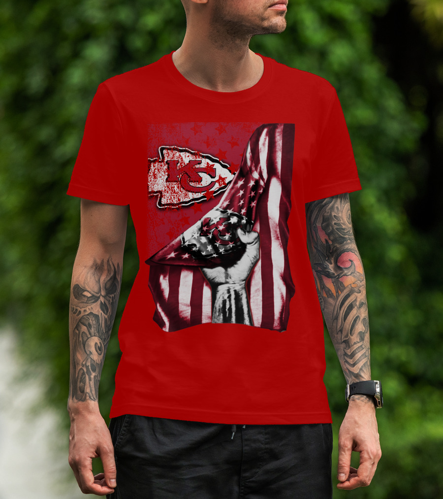 Kansas City Chiefs Arrowhead With American Flag Motif T-Shirt