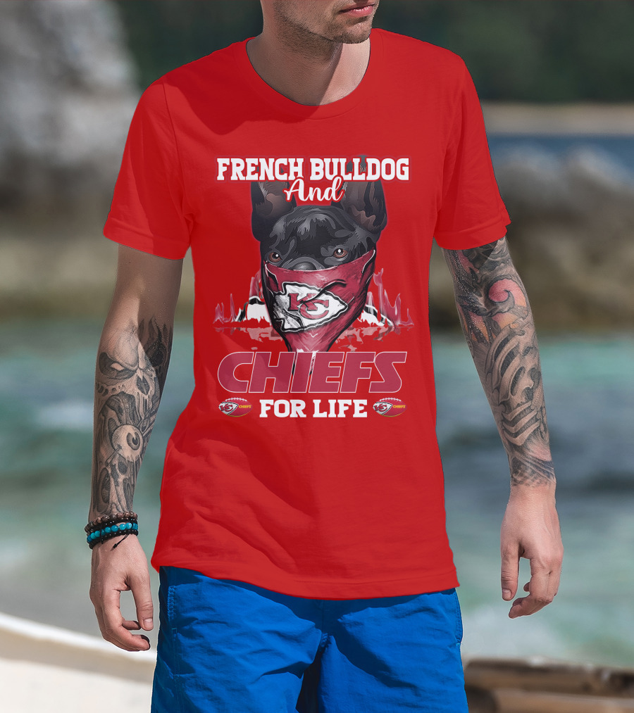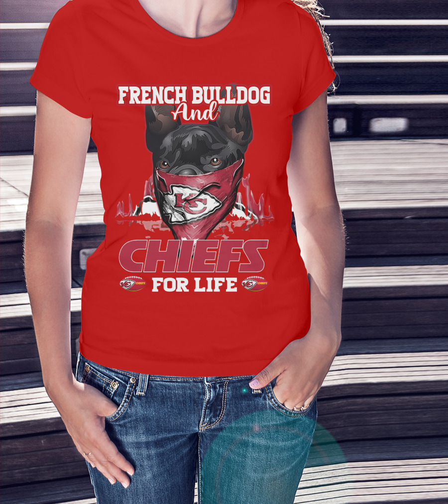 French Bulldog And Kansas City Chiefs For Life T-Shirt