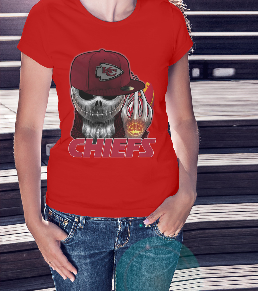 The Jackskull Chiefs Kansas City Football T-shirt is designed for everyday wear and a consistent fit. Fabric is pre-shrunk ring-spun cotton with durable stitching. See the size chart below for exact measurements.