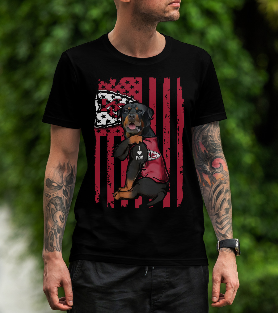 Kansas City Chiefs Rottweiler I Love Mom Flag Background T-Shirt