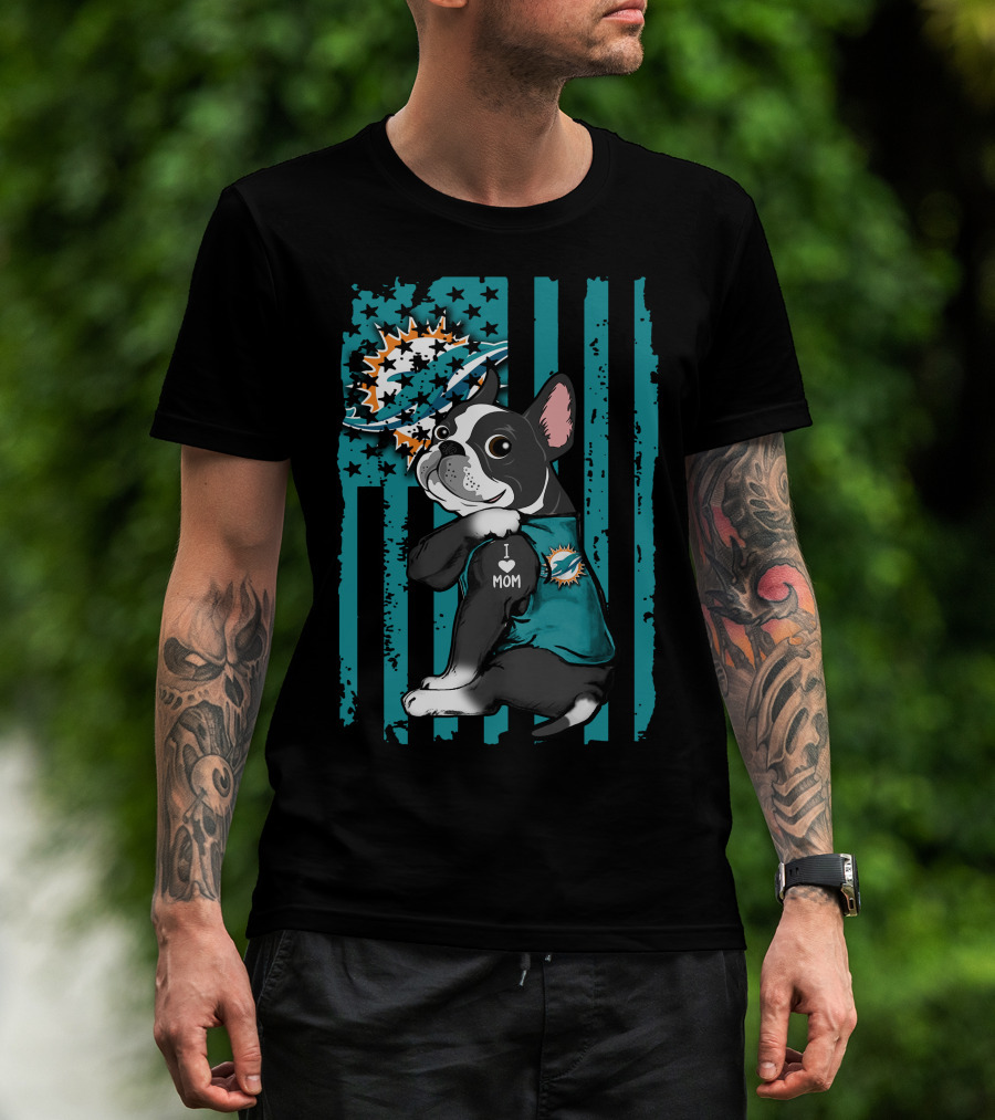 Boston Terrier Miami Dolphins I Love Mom T-Shirt