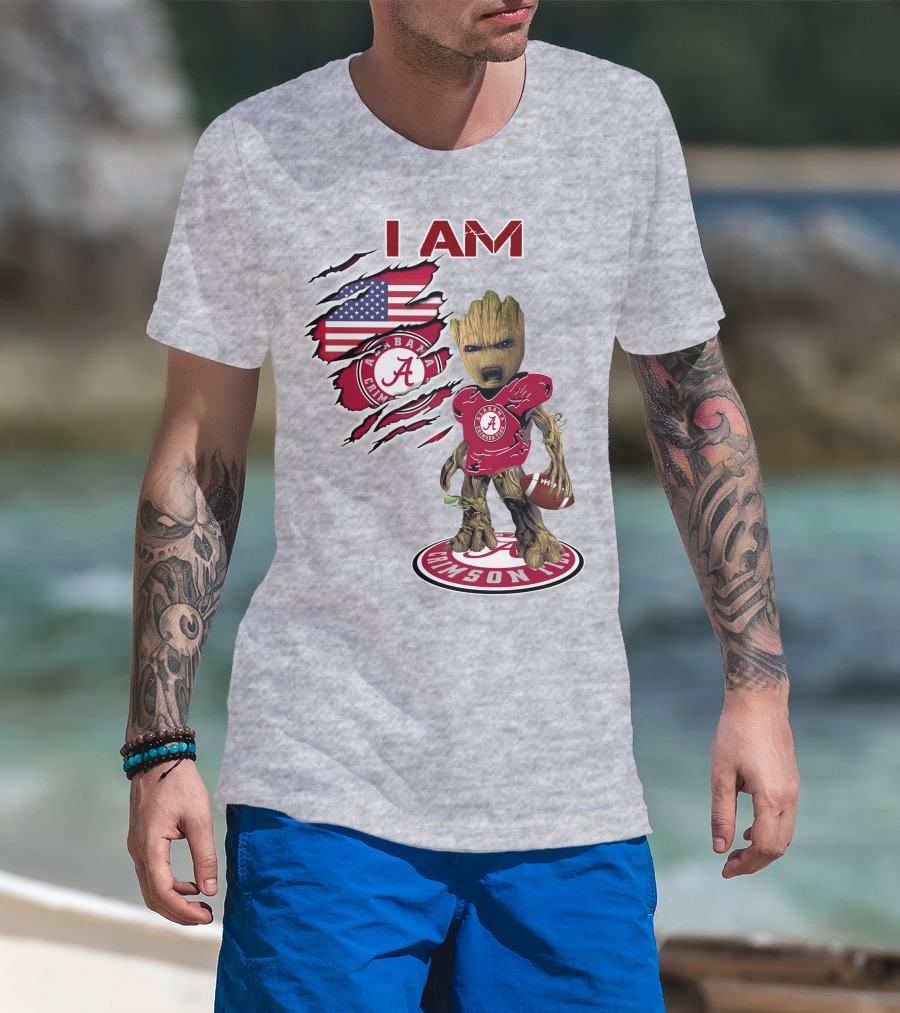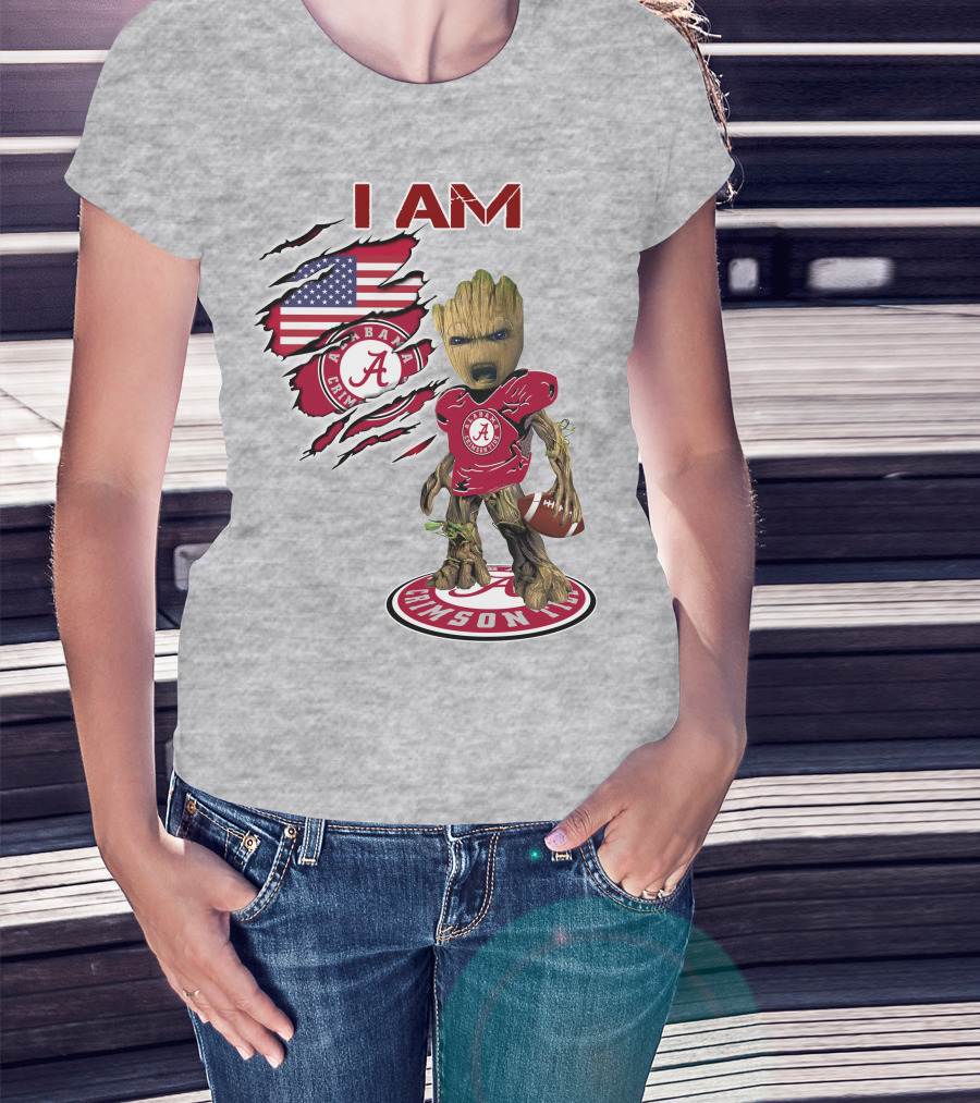 I Am Alabama Crimson Tide Baby Groot Football T-Shirt
