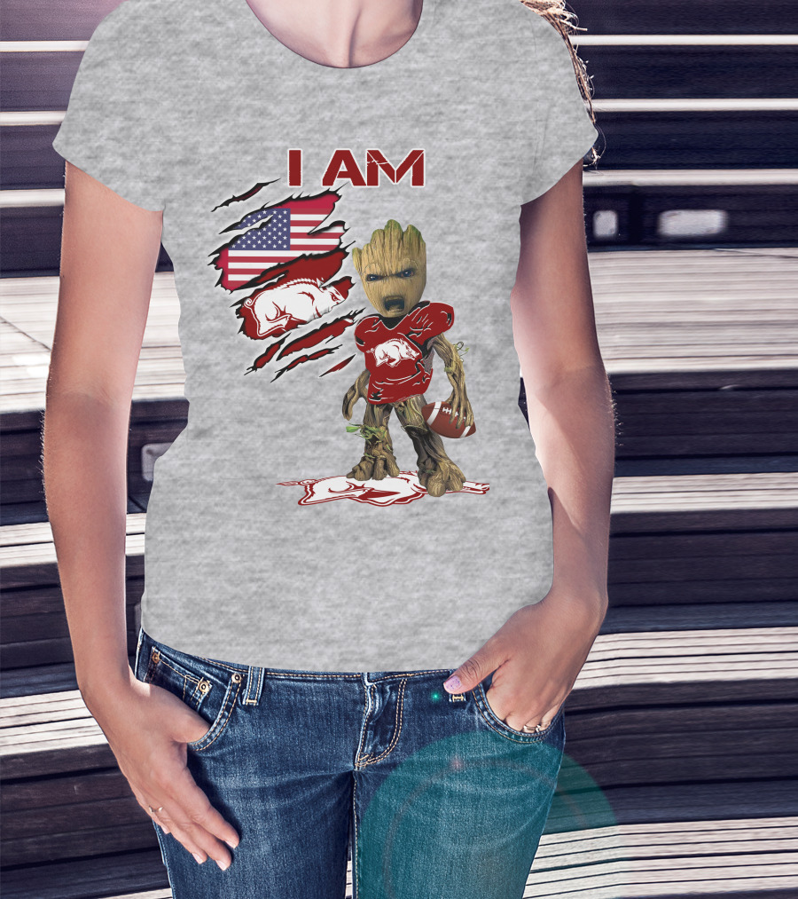 I Am Arkansas Baby Groot Razorbacks Football USA Flag T-Shirt